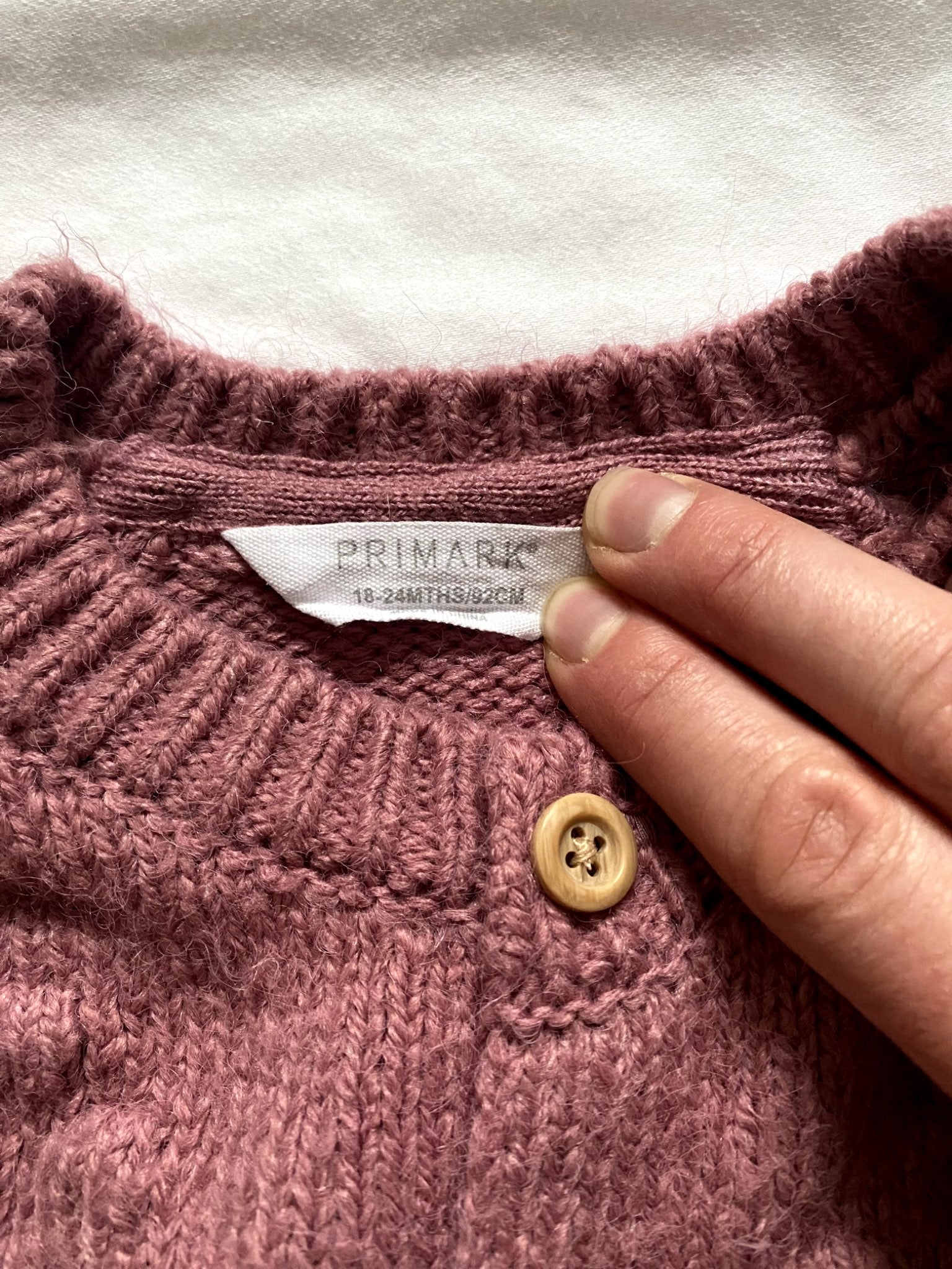 Description : Primark sweater 18-24 months Purple / burgundy color Wood buttons