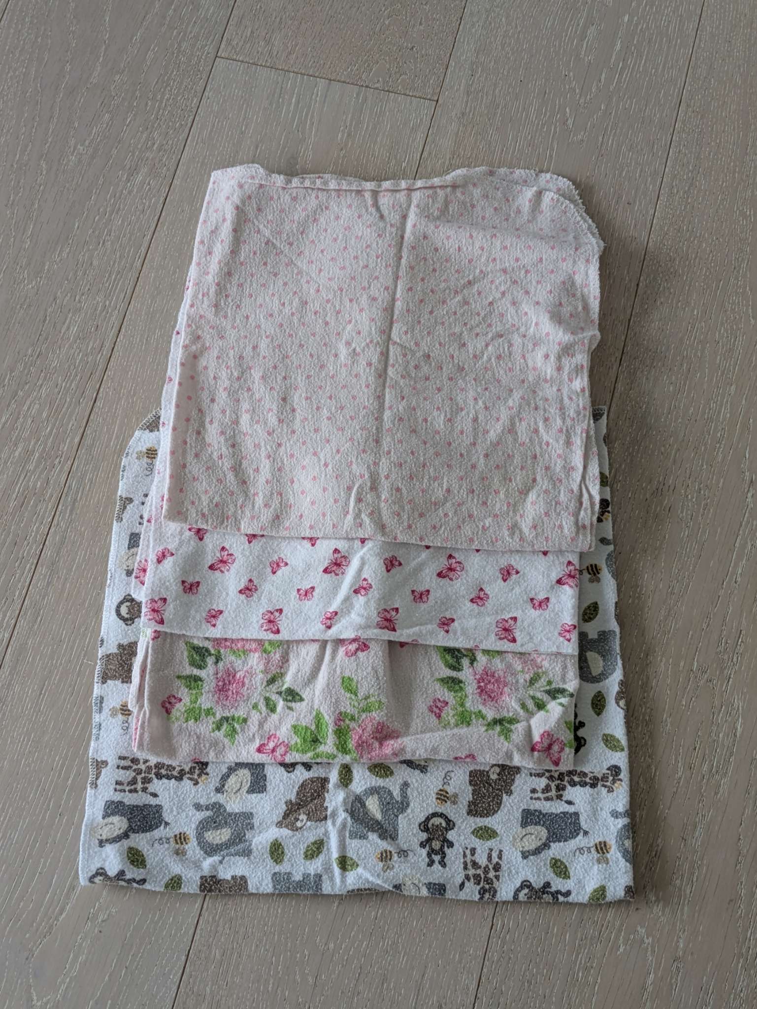 Description : Multipurpose cloths, can be used as burp cloths and large enough for tummy time/activities on the floor.