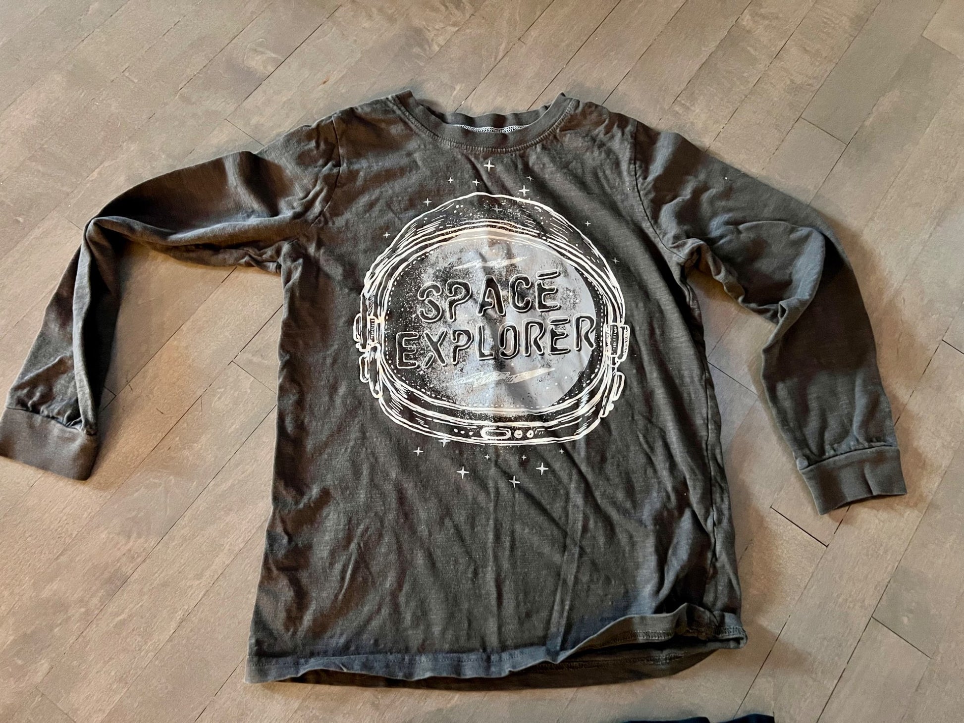 Description : Set of 6 tee shirt bundle. All very good to excellent condition. All size large (10-12). Blue Sonic fee is sleeveless. Grey space tee is long sleeved. All others are short sleeved. Various brands. Cat friendly home.