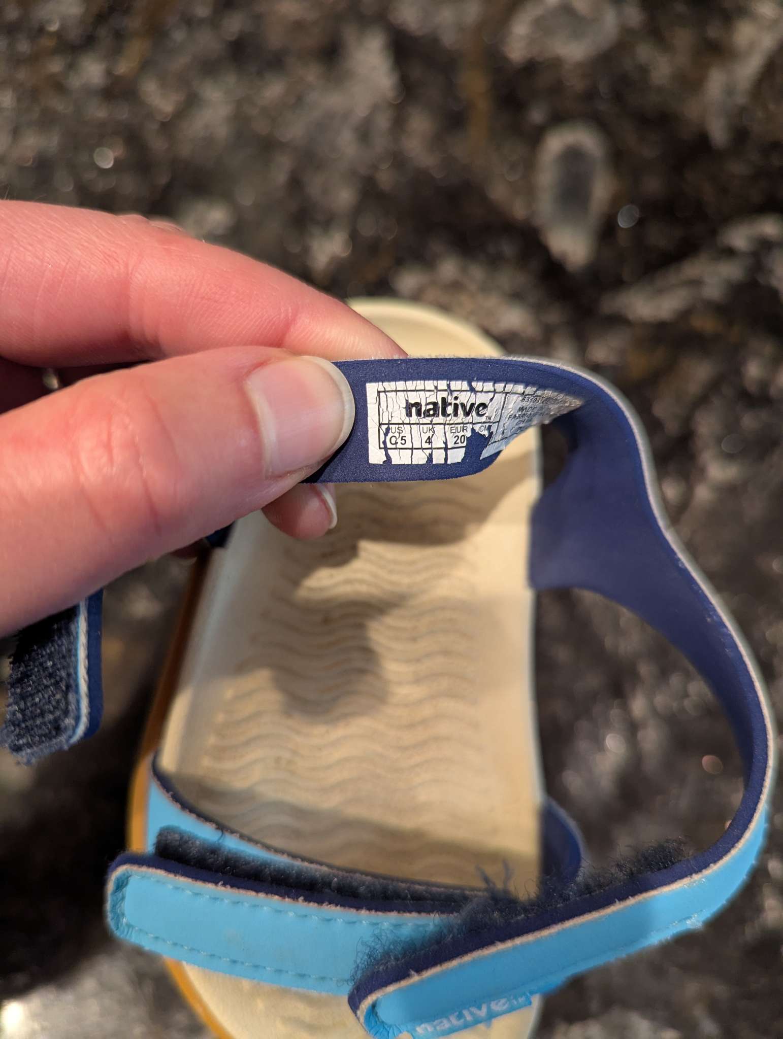 Description : Light blue velcro strap sandals Toddler Size 5 Very lightly used - in really good condition Brand Native