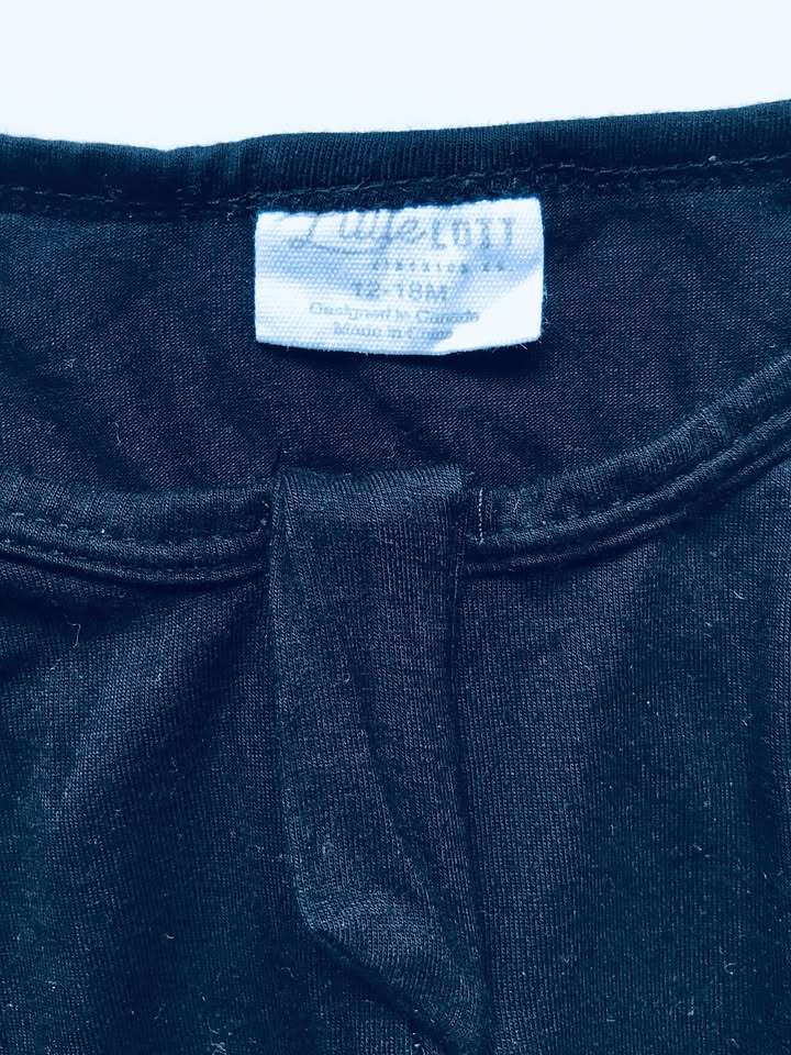 Description : 12 to 18 month Little Lott Zipper Romper in Black, Calgary based Canadian brand. In very good used condition with minor wash wear/pilling and no stains, holes or flaws. Always washed on gentle and hung to dry. Pet and smoke free home.