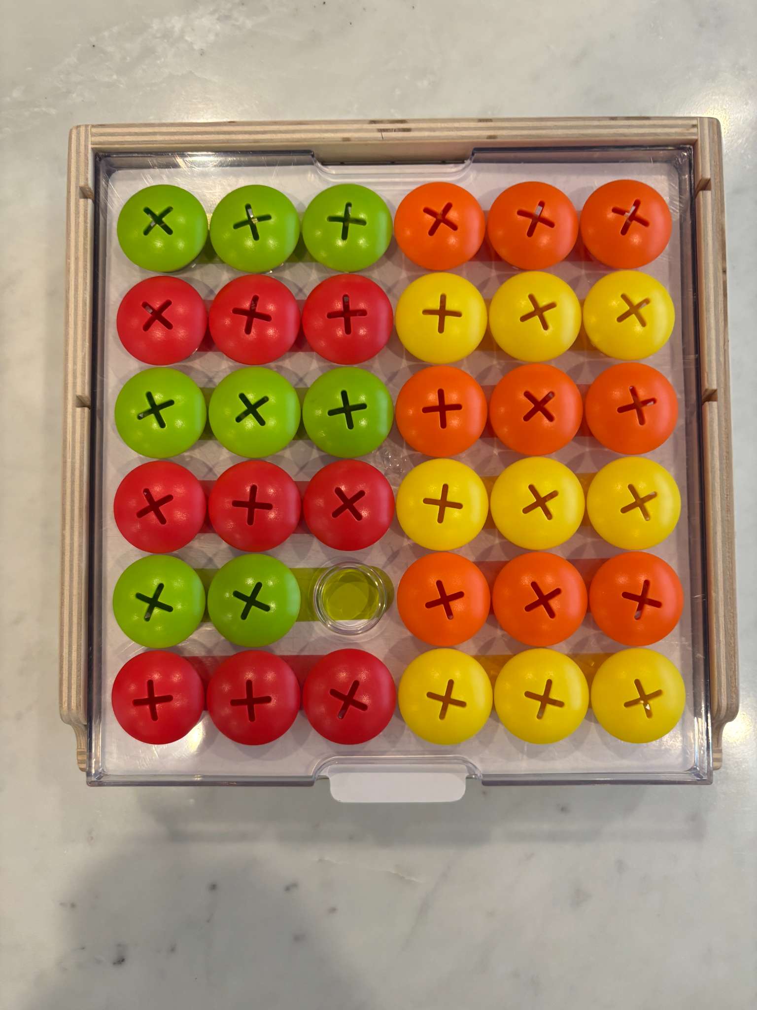 Description : 3 different patterns to fill in. Found the missing peg! All pieces included