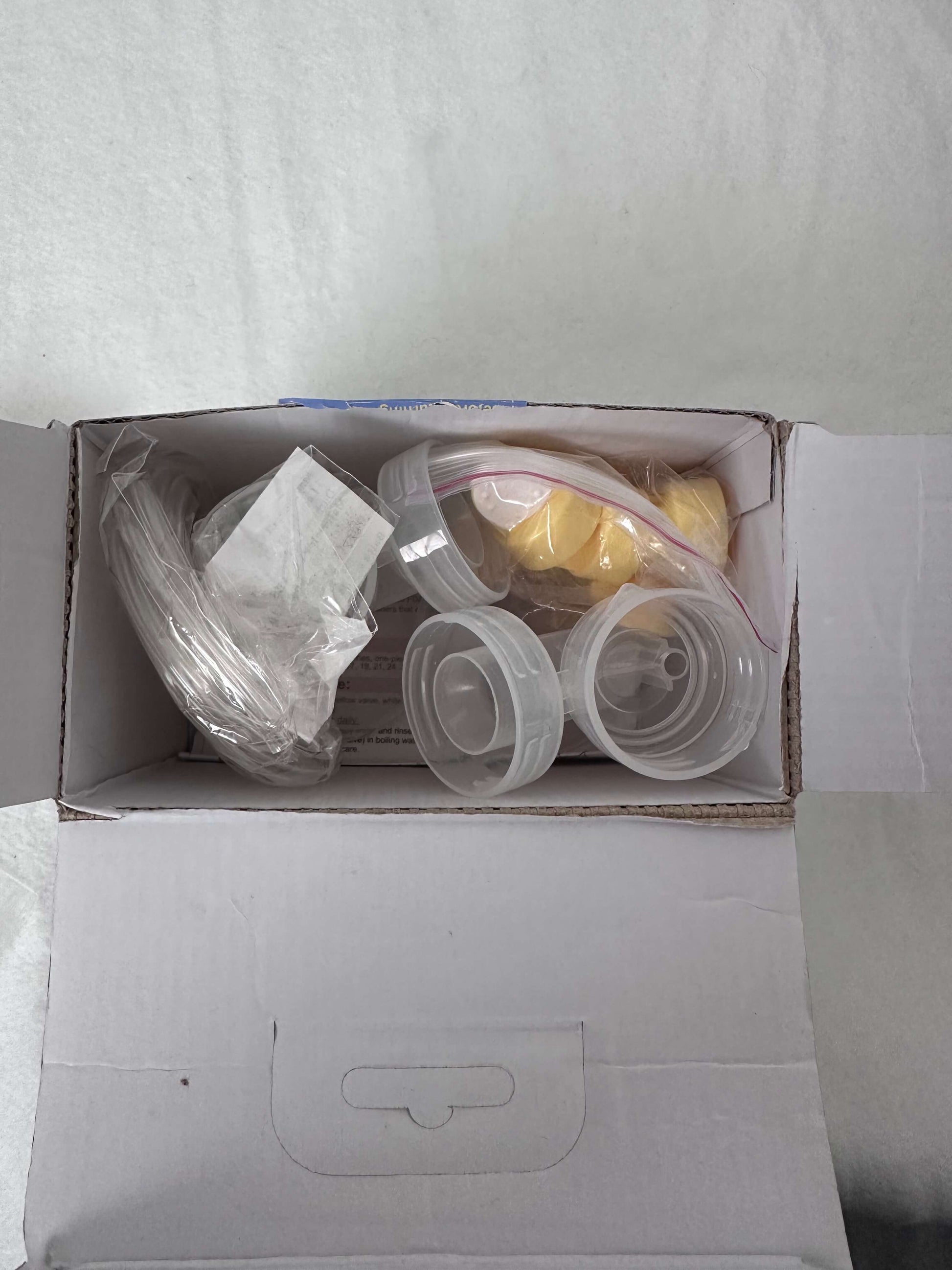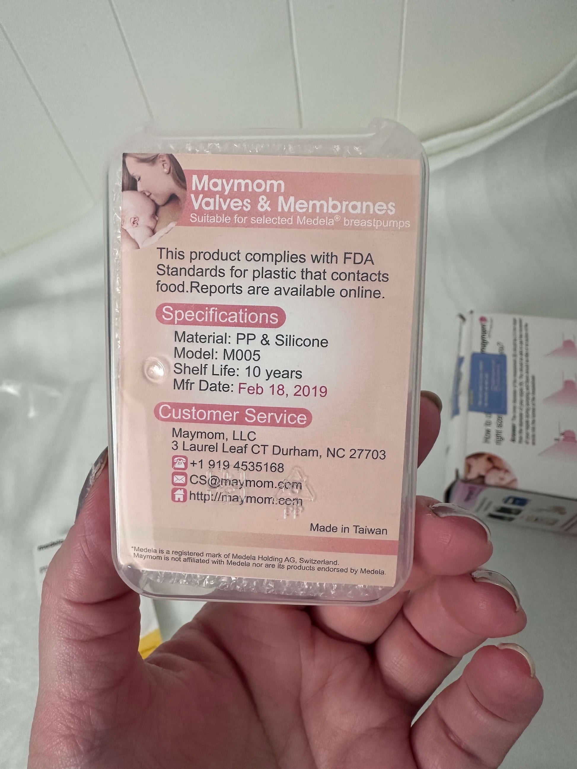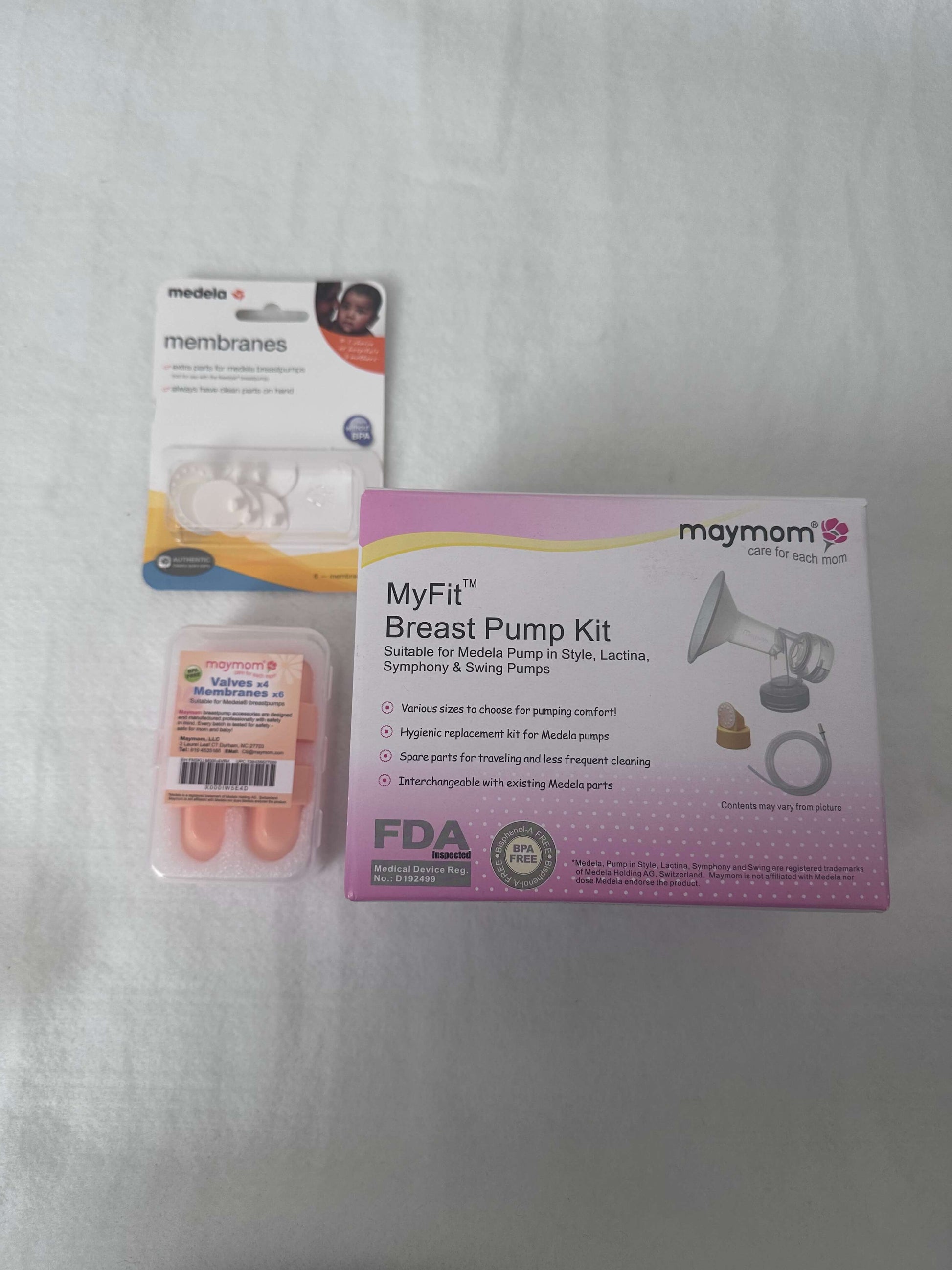 Description : Shield used sparingly as they were too small for me, but everything else is brand new, never used. Note that the medela membranes packaging was open but never used. Maymom and Medele brands.