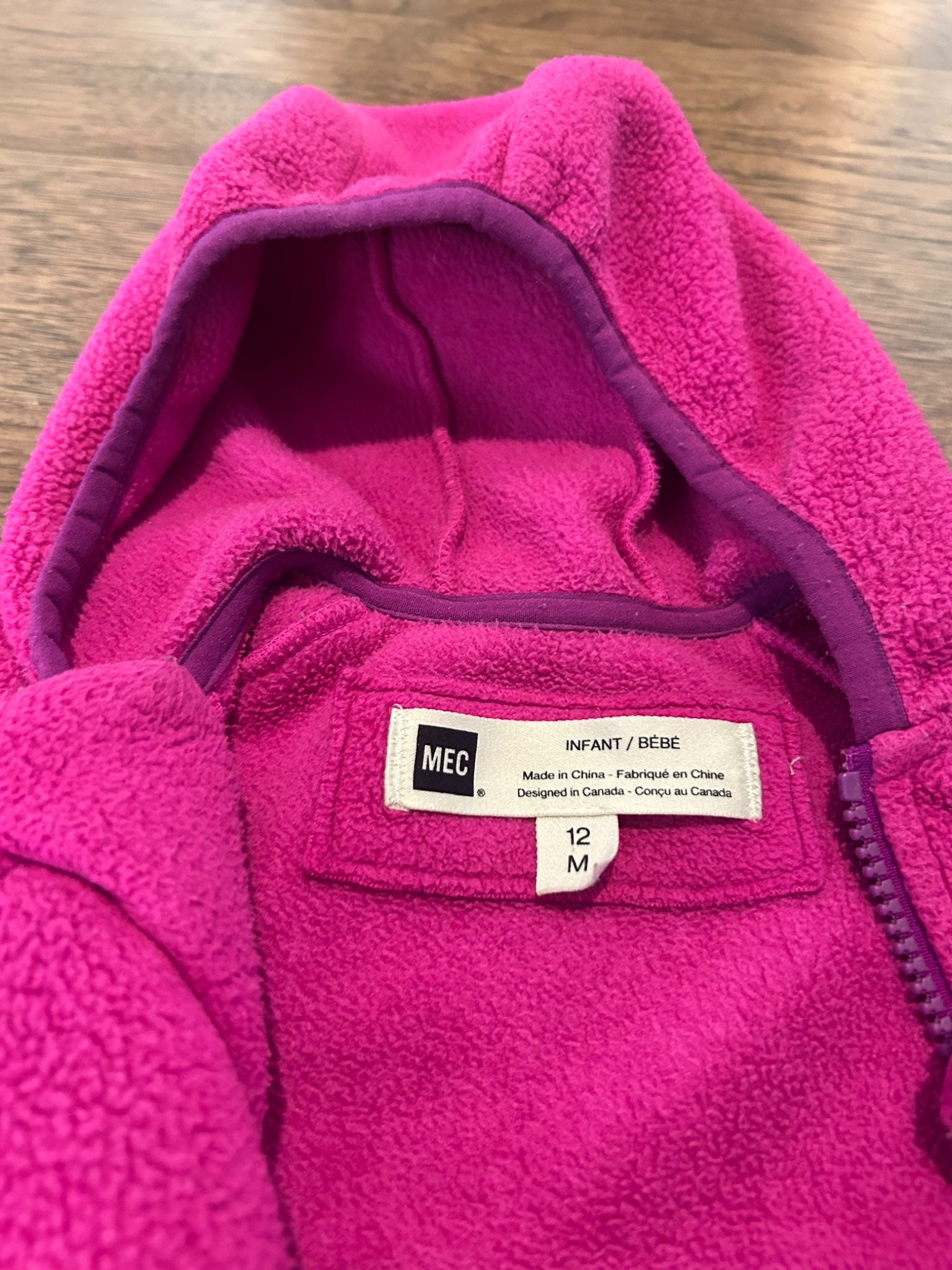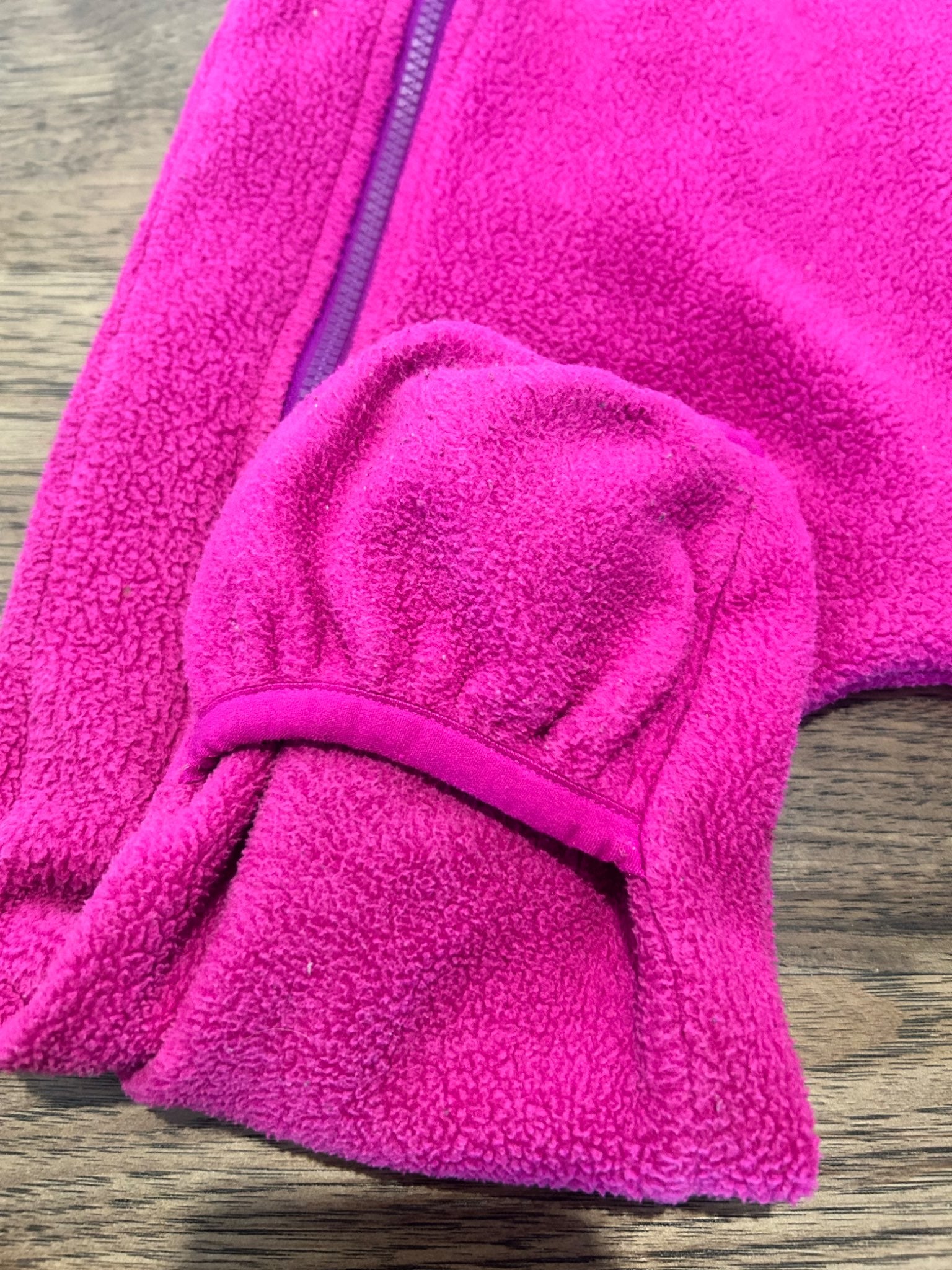 Description : Double zipper Fold over hands and feet cuffs. Medium weight fleece. Great for car seat. Daughter wore from 12-18 mos comfortably.