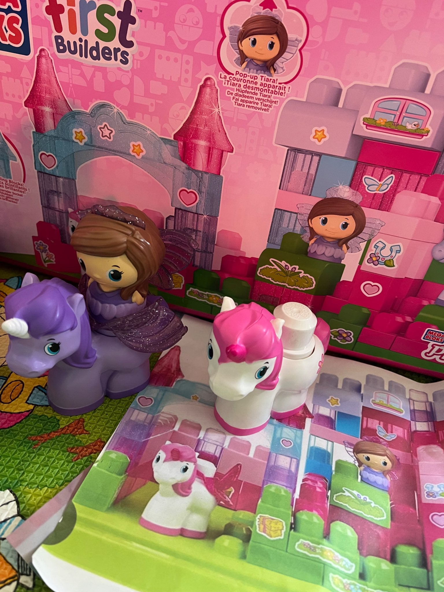 Also putting in additional wheel on vehicle from another set we had so the princesses and unicorns can be pushed around on.