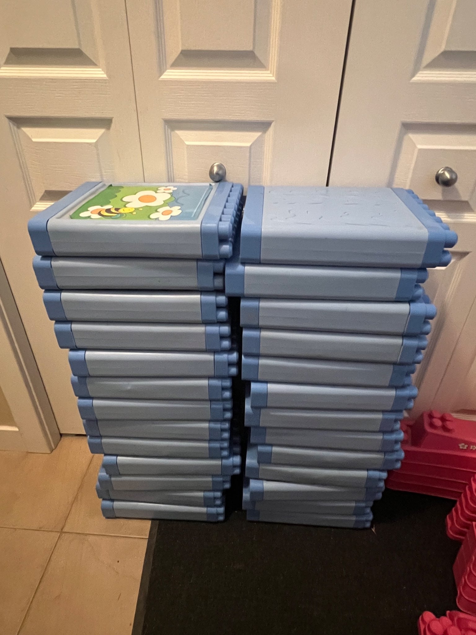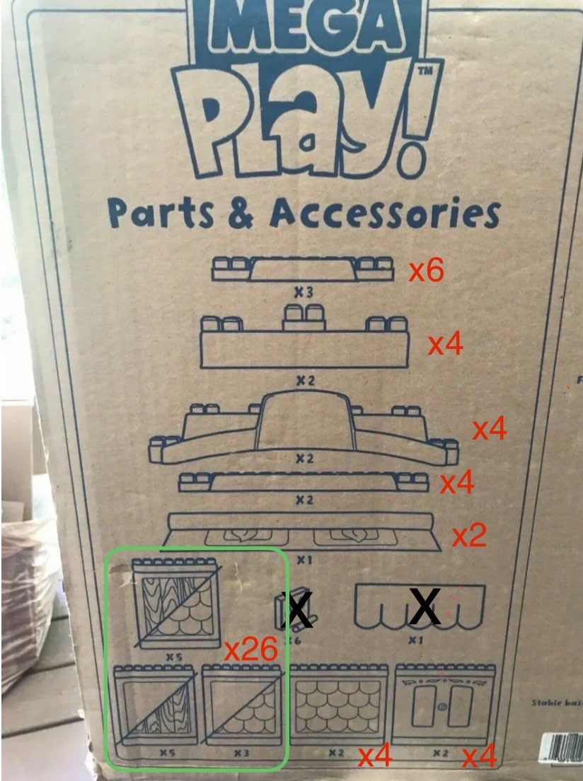 Description : Mega Bloks Mega Play My Own Home - Build into a Playhouse. Includes than 2 sets. Some stickers started to peel off, but could be glued down (see photos). Does not come with box (picture just for reference). Each set includes 27 pieces since missing the chalk (x6) & curtain (x1) from the sets. Recommended for ages 3+. MSRP: $100 (for each set) . Two sets MSRP: $200.