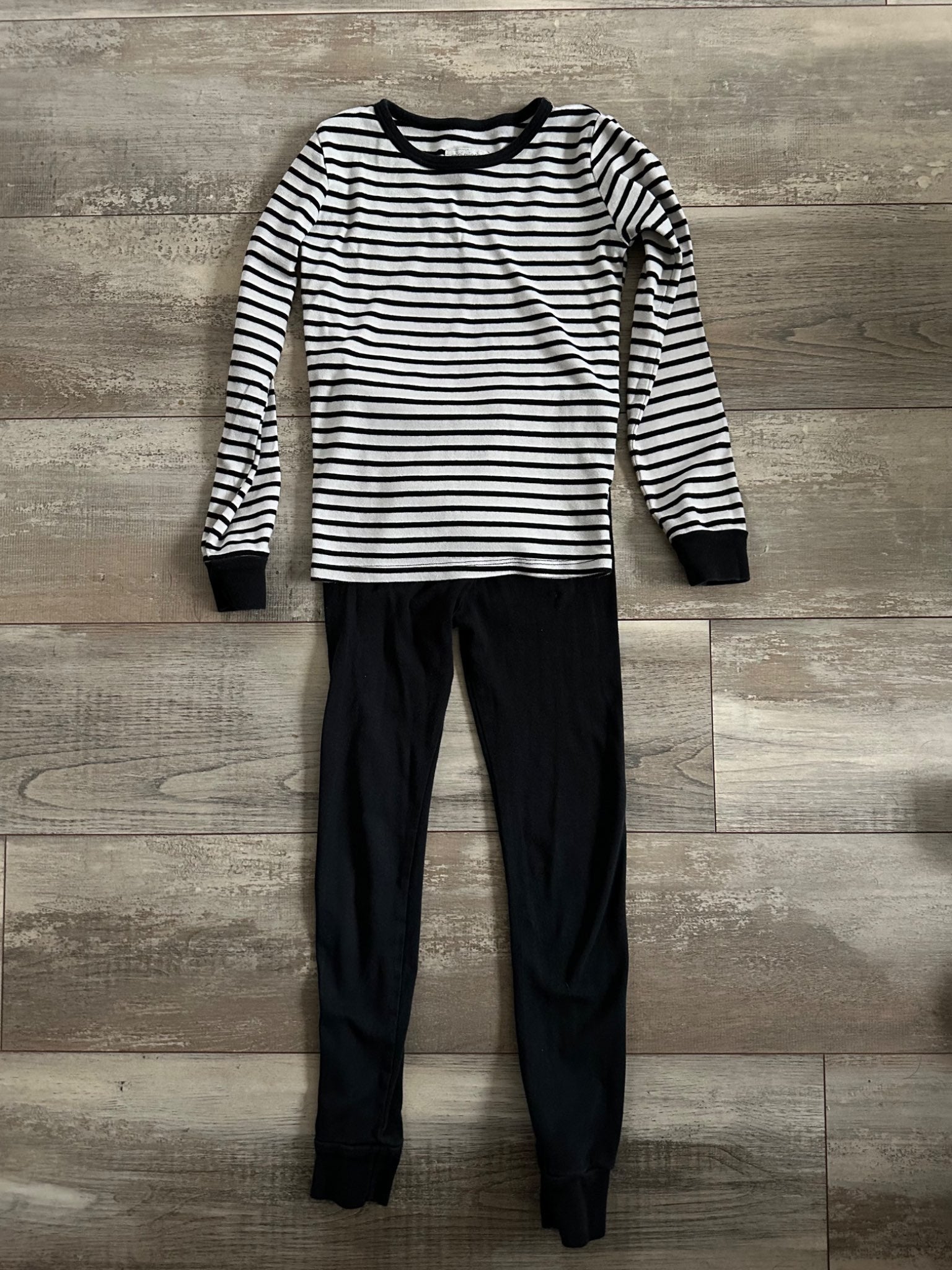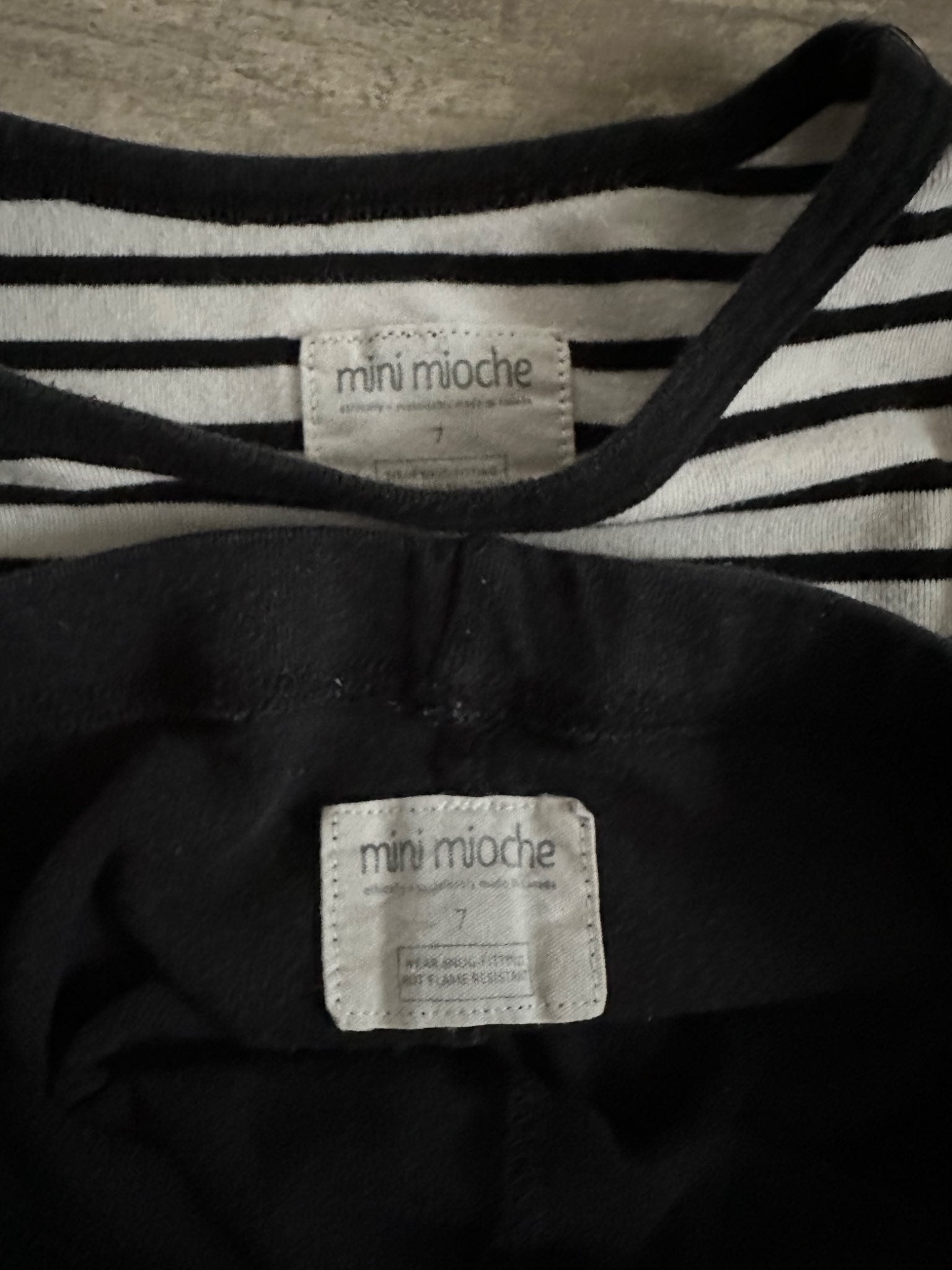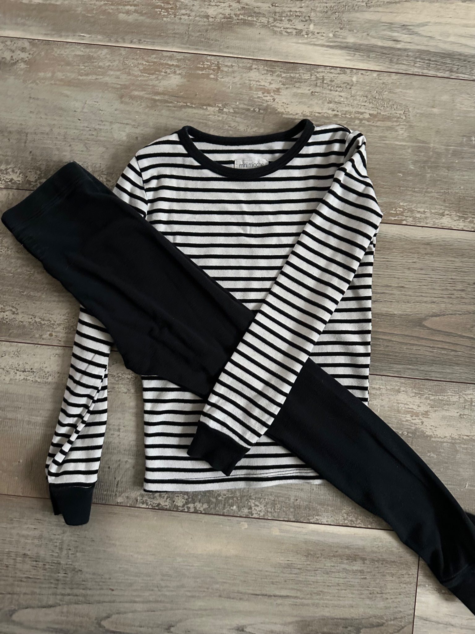 Description : Sleepwear/lounge set from Mini Mioche with black and white striped top and solid black bottoms