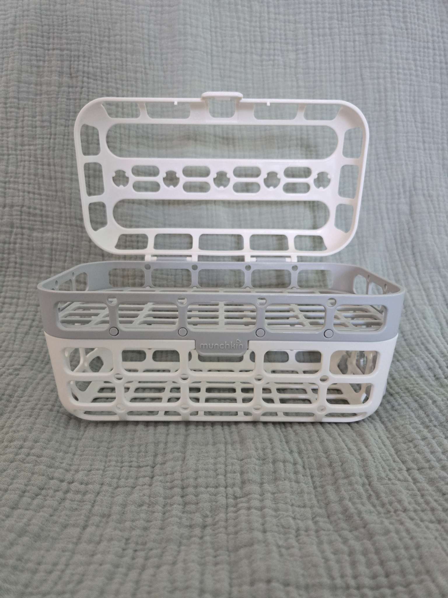 Description : Baby dishwasher basket accommodates both standard and wide mouth bottles Easily squeeze and slide nipples into place - no need to open top lid to load and unload Large lower basket holds collars, valves, spouts and other small bottle and sippy cup accessories Includes straw rack plus special area for holding and cleaning pacifiers Use in top rack of dishwasher only