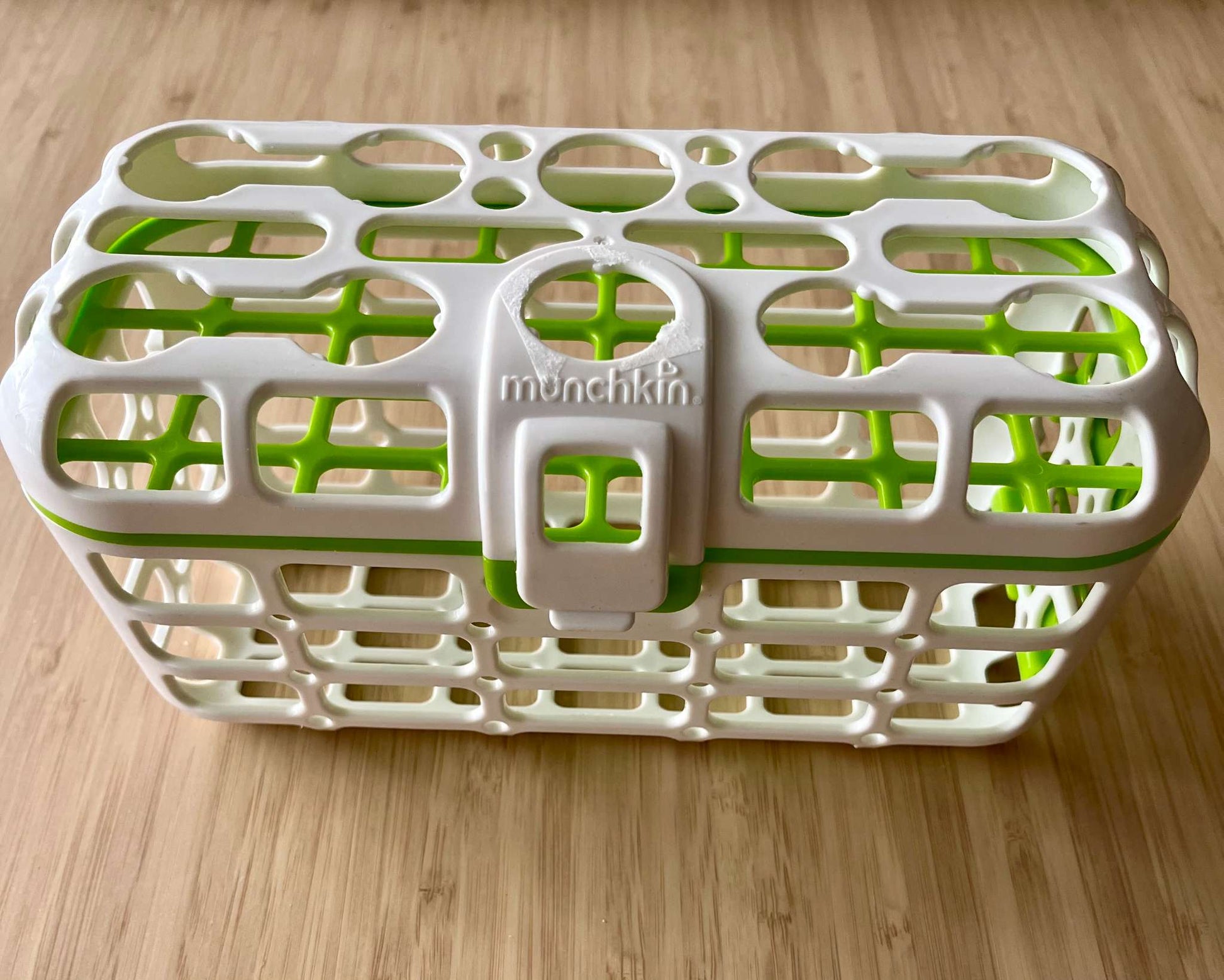 Description : Description from Munchkin: With all the cups, bottles, pacifiers, and straws that hit the ground on any given day, you have a large pile of baby-related items to wash every single night. Designed especially for wide mouth bottles and nipples, the Munchkin High Capacity Dishwasher Basket gives you the day off from bottle washing duty! With its jumbo size, you can fit all of your little one's baby items and bottle parts into the basket and run them through the dishwasher without worrying that you'll lose track of them once the wash cycle ends. This handy dishwasher caddy features a patented straw cleaning rack on the side to hold straws upright and firmly in place for a thorough clean. Flip the lid open and place pacifiers, spoons, bottle sealing discs, valves, caps and other small parts into the basket. Easily press nipples into the nipple sanitizing lid, snap into place, and you are set to wash without worry! Just load up the basket and let your dishwasher do the dirty work while you get down to business spending time with your little one. Holds both standard and wide bottle accessories Load nipples easily from top Special pacifier rack Adjustable middle shelf for more capacity Straw cleaning racks hold 5 straws