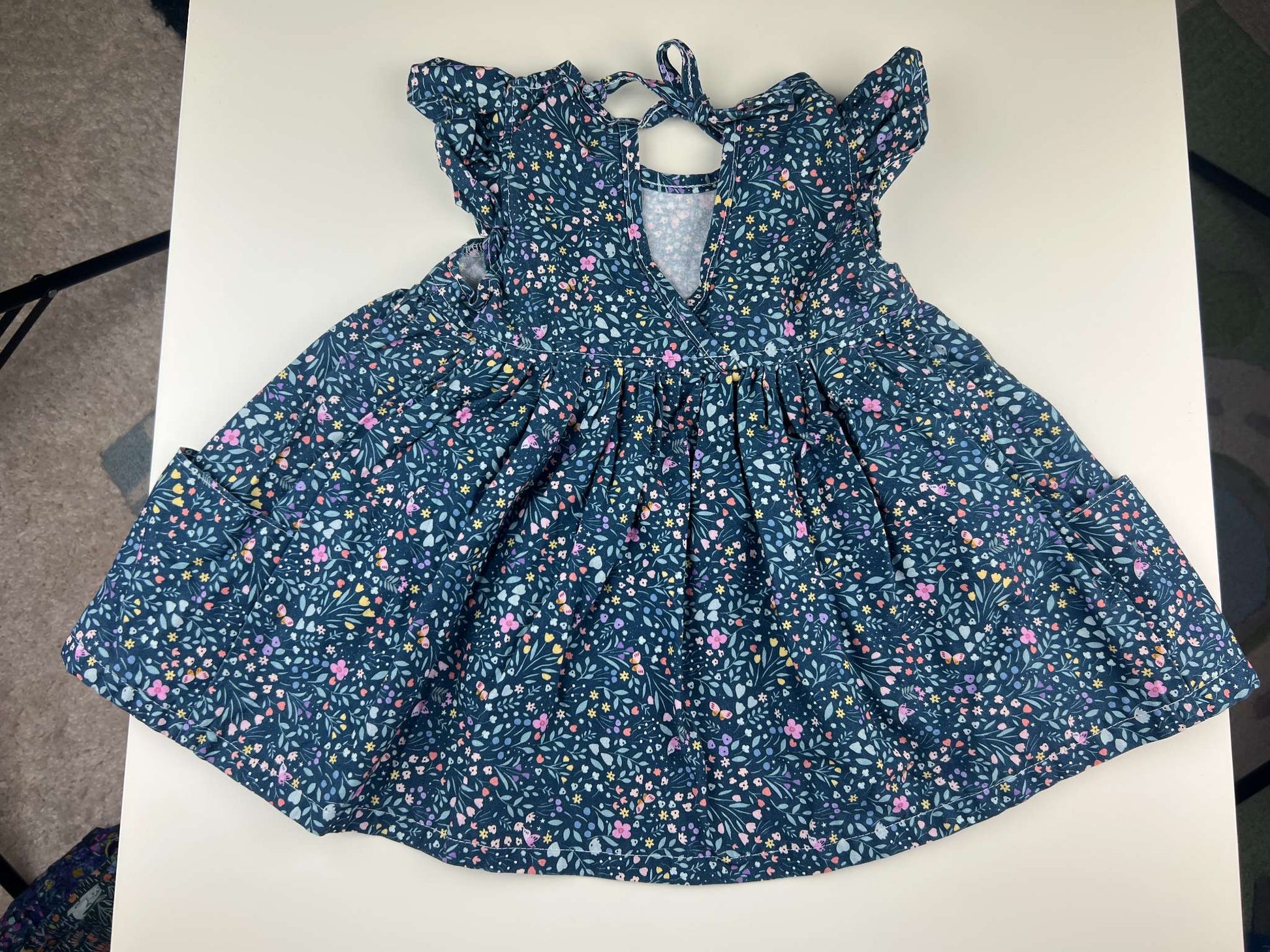 Description : Ruffled sleeveless tunic from Nest and Nurture with cute blue tiny florals. Also has two large side pockets. Fits 2T. Purchased new from Nest and Nurture for around $50.