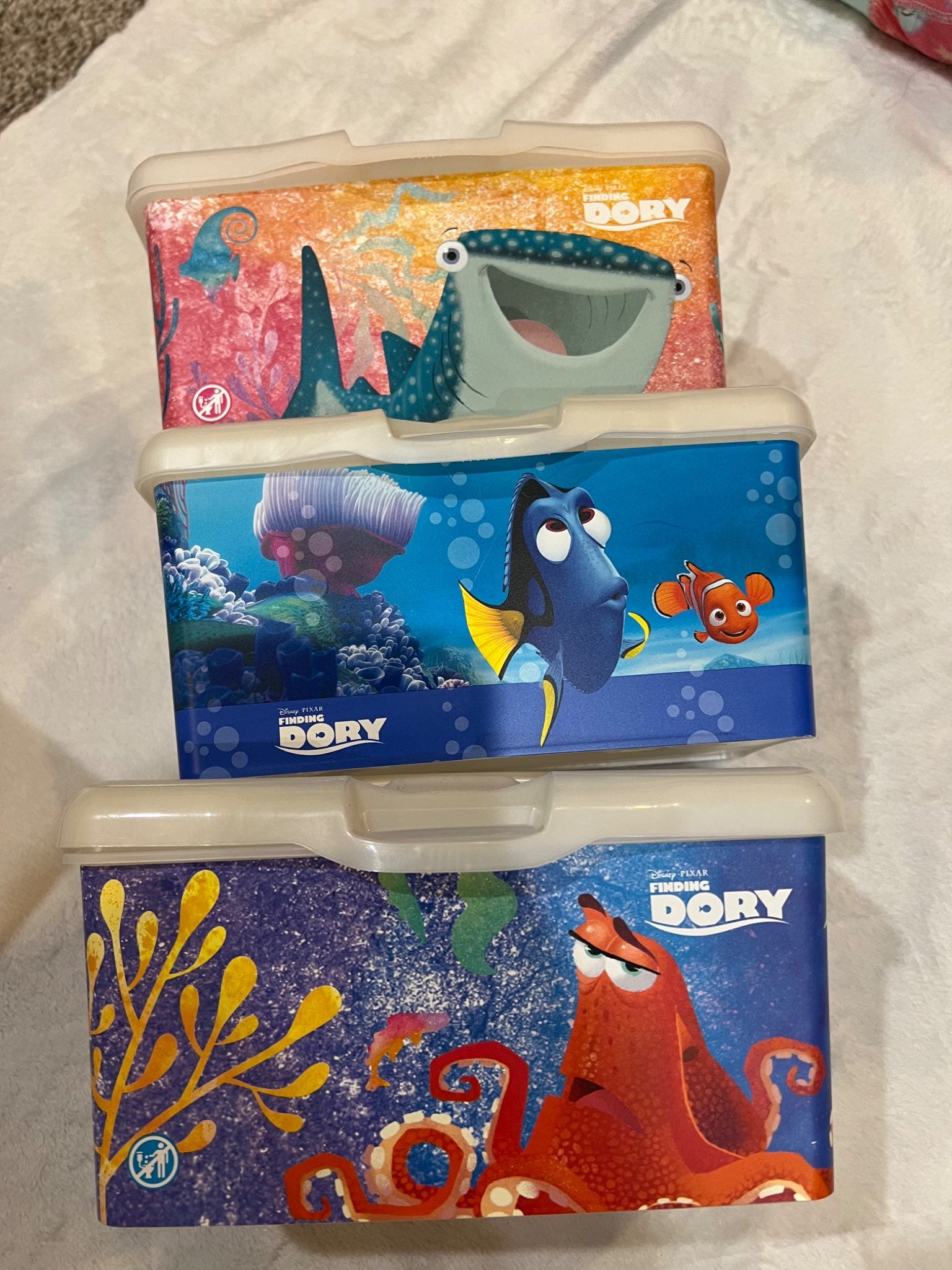 Description : Finding nemo themed 3 new never used great for wet wipes storage One used including free