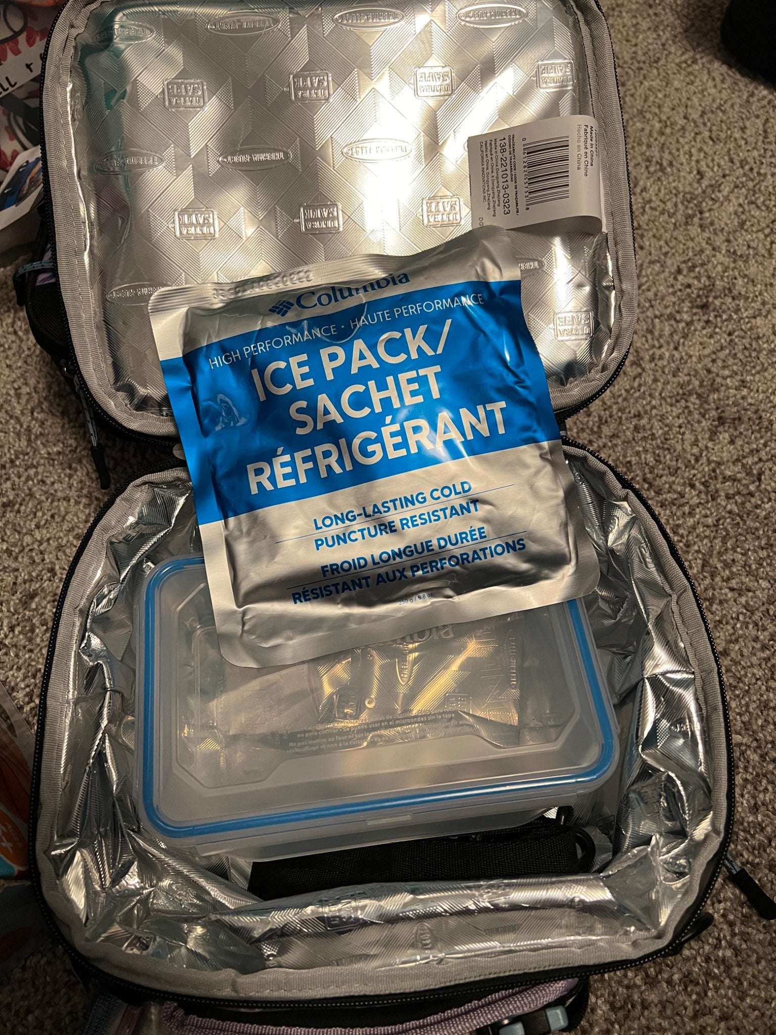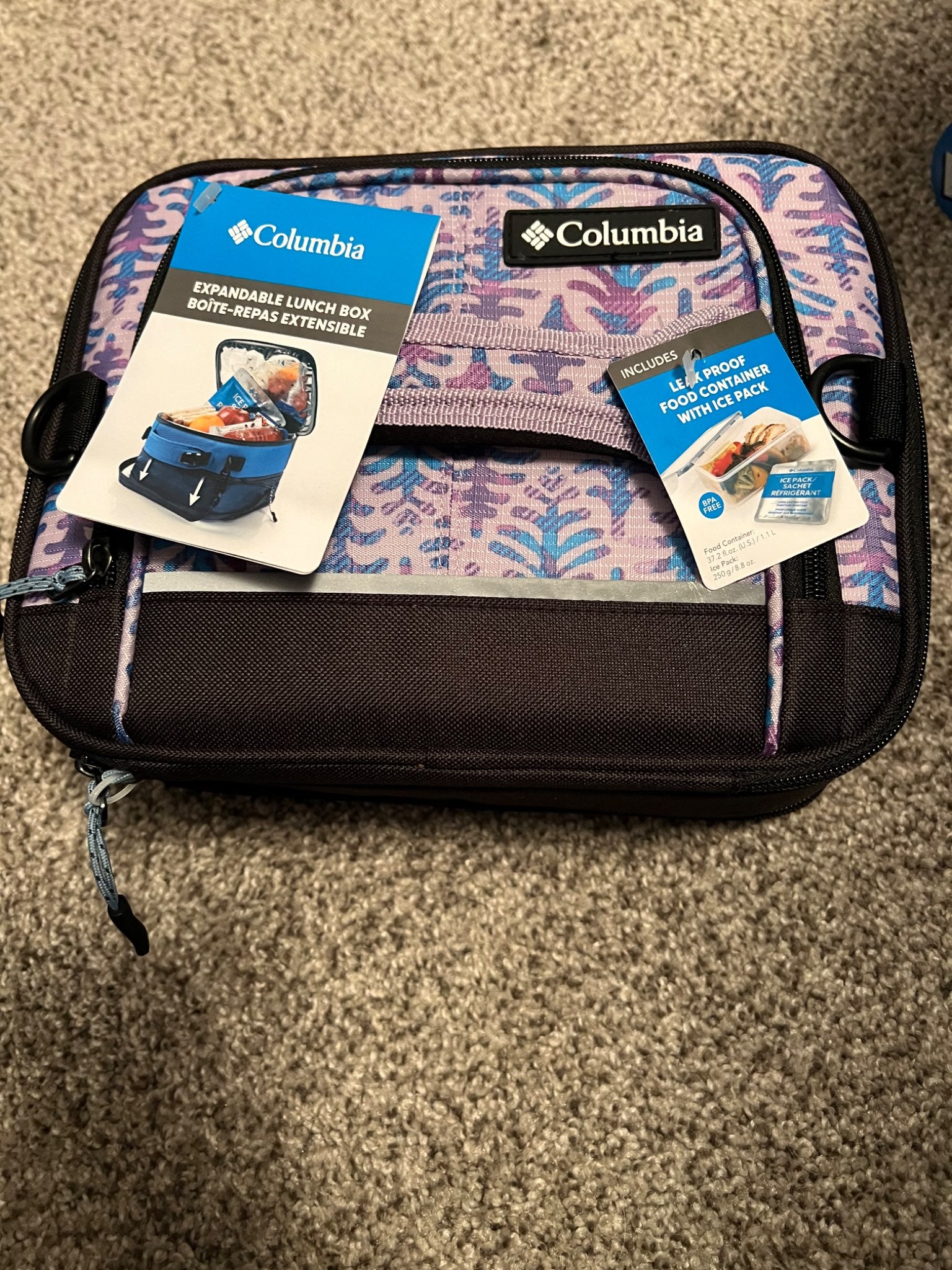 Description : New expandable lunchbox Includes container and ice pack Strap to carry multiple ways