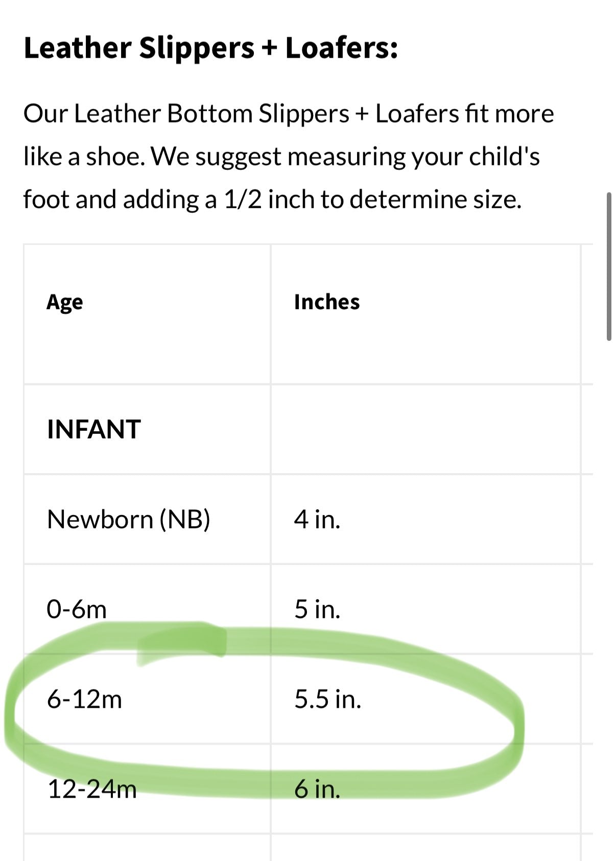 Labelled 6-12m, but my son wore his to 18m. They are fairly comparable to a size 5 toddler shoe (measure 5.5”), but can be worn earlier as they can be tied tighter and *actually stay on*.