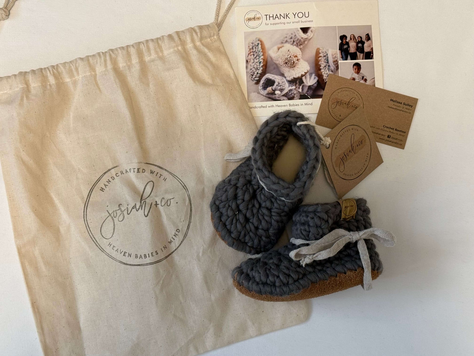 NEW handmade Josiah & Co baby booties; MSRP $60, Shoes 4 (Baby: 0-12 mth)