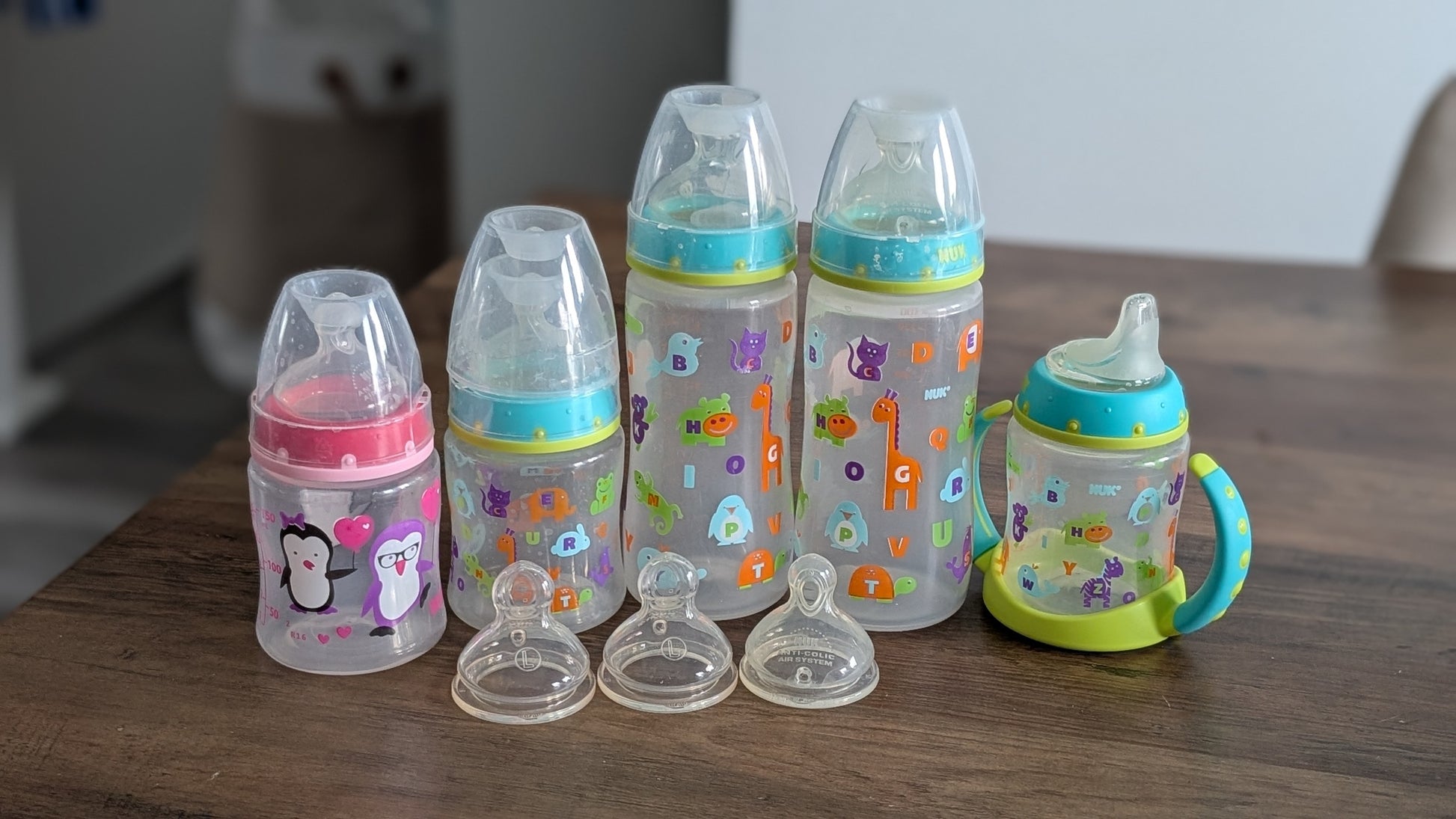 Description : 2 x 10oz(300ml) Bottles 3 x 5oz(150ml) Bottles 2 of each S, M, L flow nipples + sippy spout 1 x Sippy cup handle