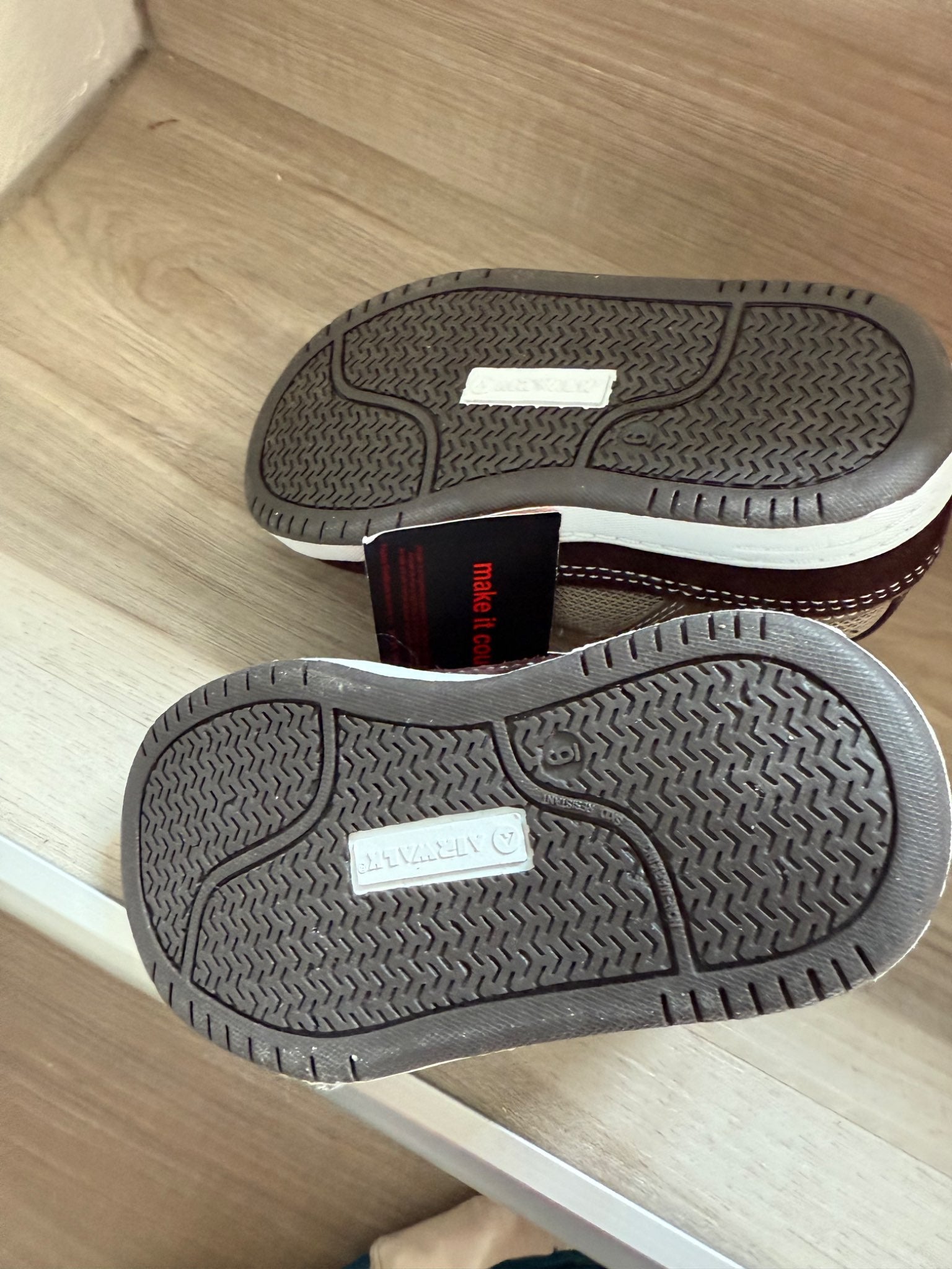 Description : NWT toddler shoes, size 6, Airwalk brand. Velcro straps. Maple and tan colour.