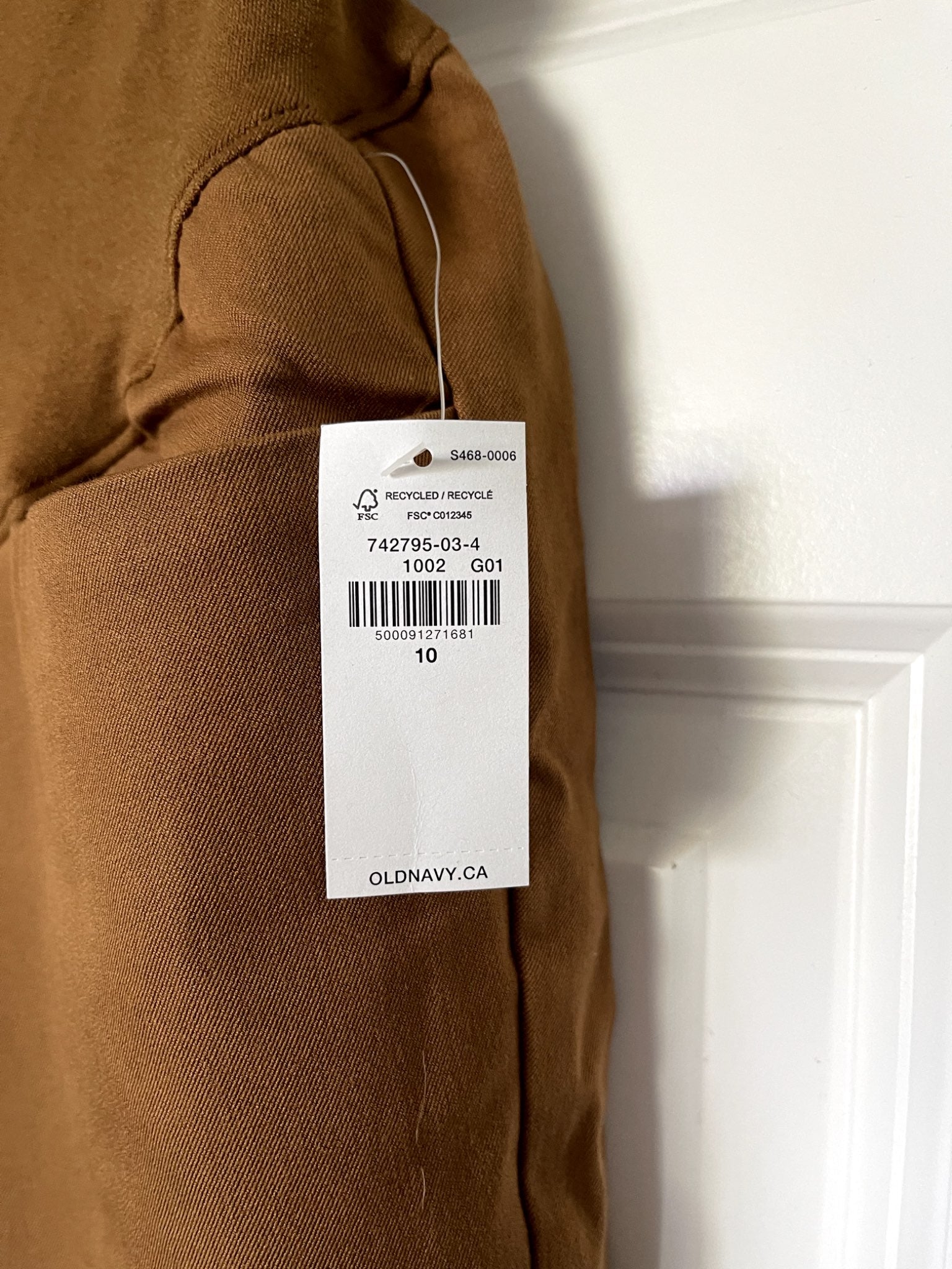Description : Classic Pixie pant from Old Navy. Full panel in the front, never worn in a caramel colour. Size 10