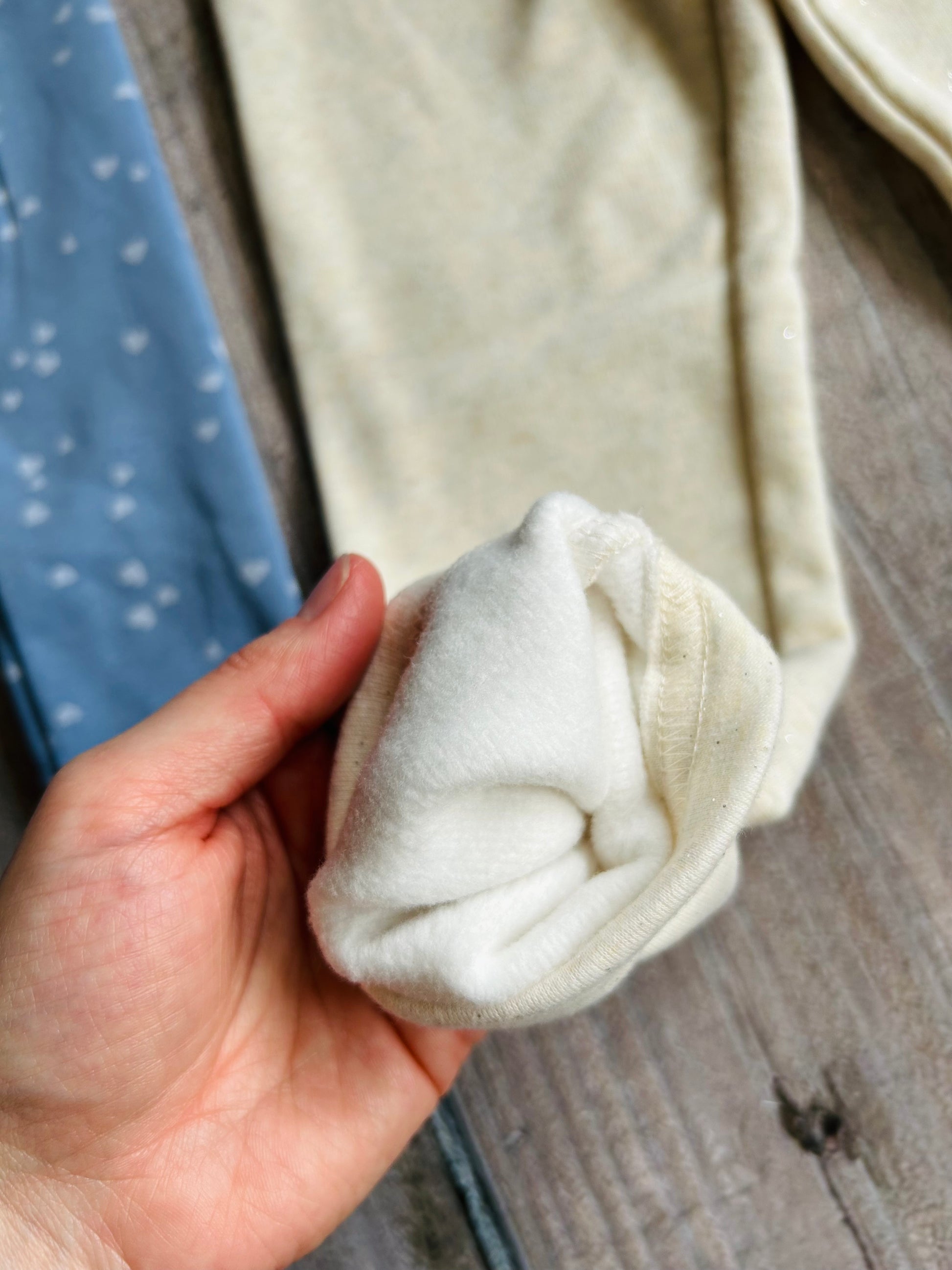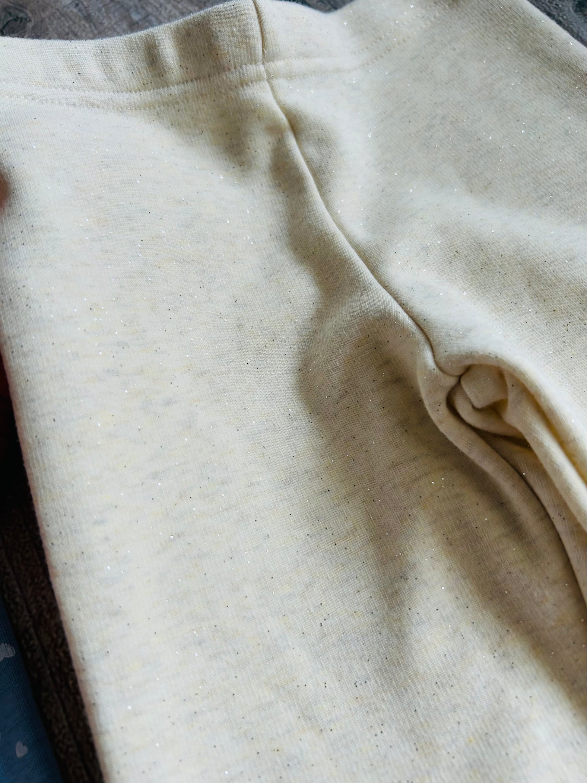 Osh Kosh & Joe Fresh size 6T girls cozy winter leggings bundle, blue with hearts and oatmeal off white with silver sparkles, like new, Kids 6/6X (extra small)