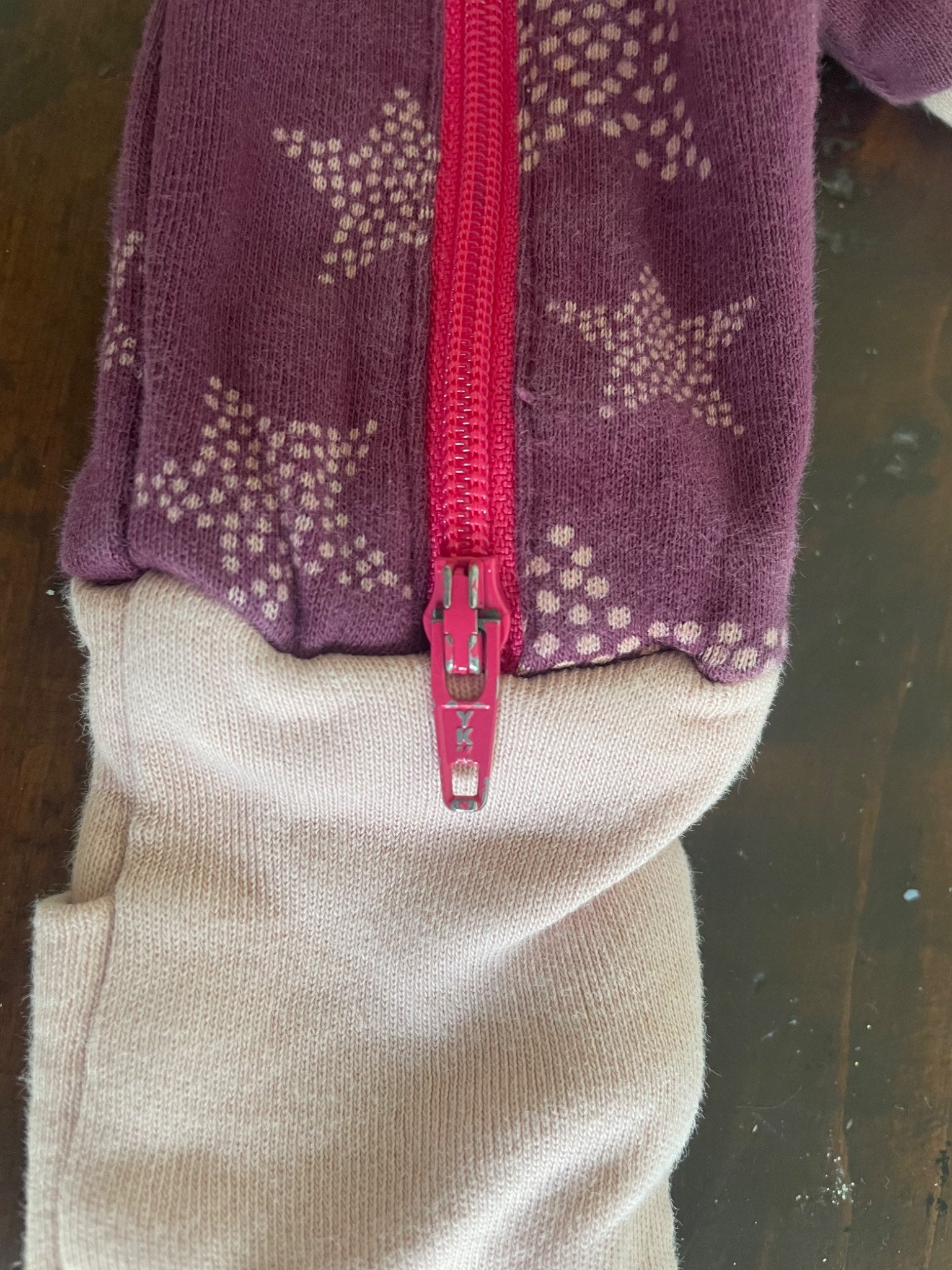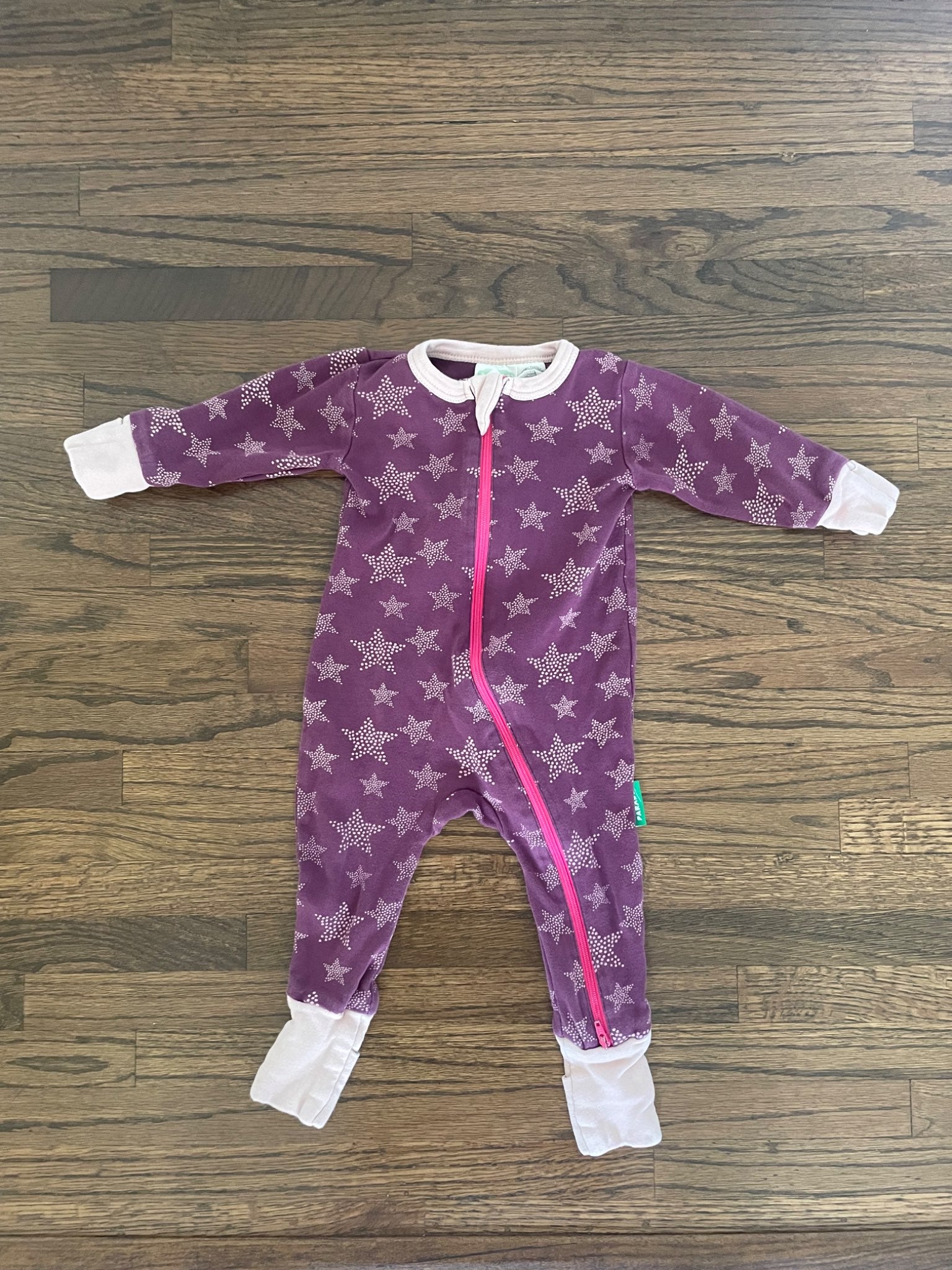 Purple/pink dotted stars onesie; Parade Organic brand.