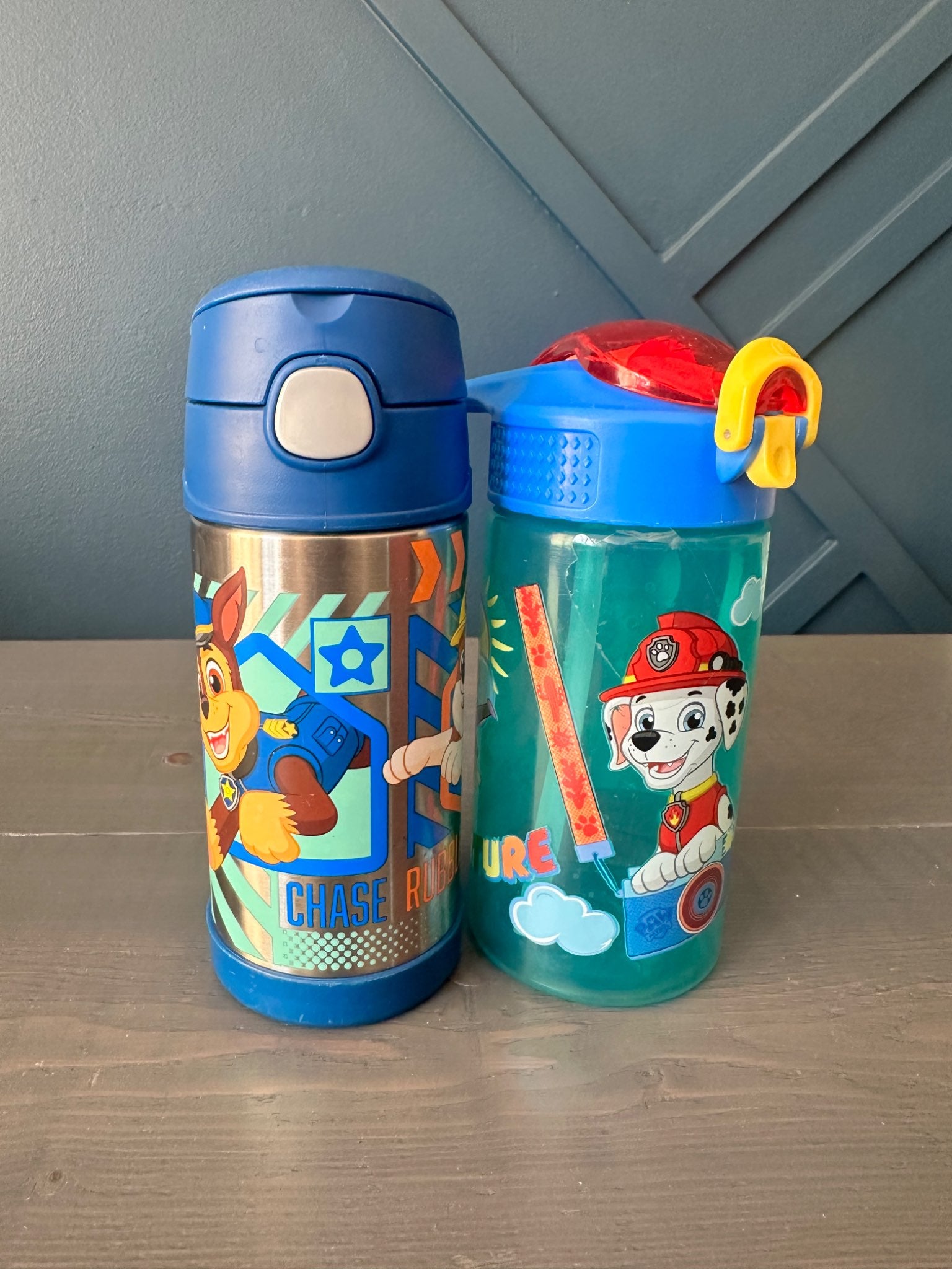 Description : The bottle with the red spout doesn’t click to close but needs the yellow hook to close. Otherwise in great condition.