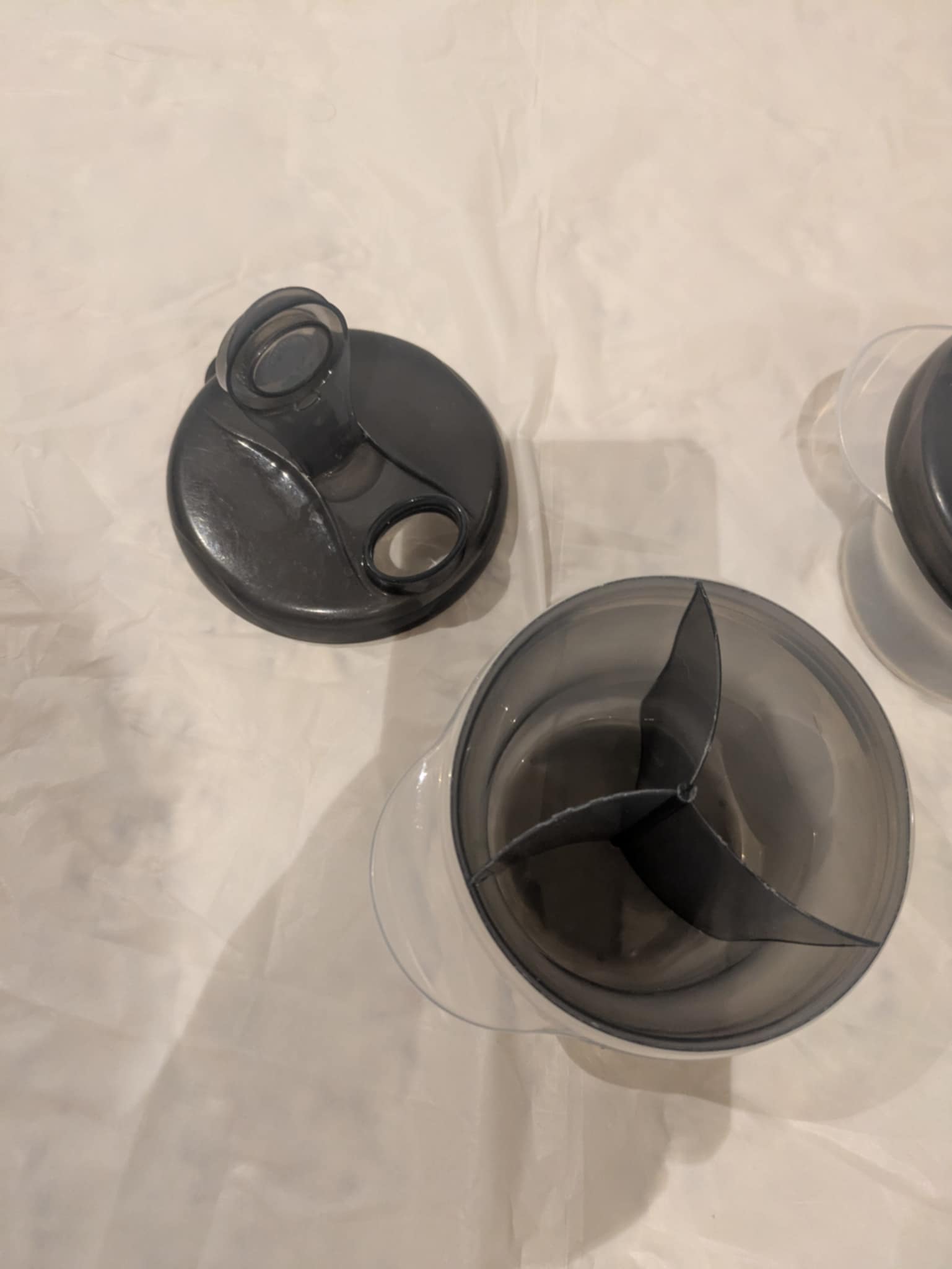 Description : 2 Philips formula dispensers. Each container has 3 compartments for your pre-measured formula, to use on the go. One container has some scratches on the lid (alternate photo), and both have marker that hasn't washed off, but still fully functional and no leaks. Inside inserts can be removed to put larger amounts or snacks.