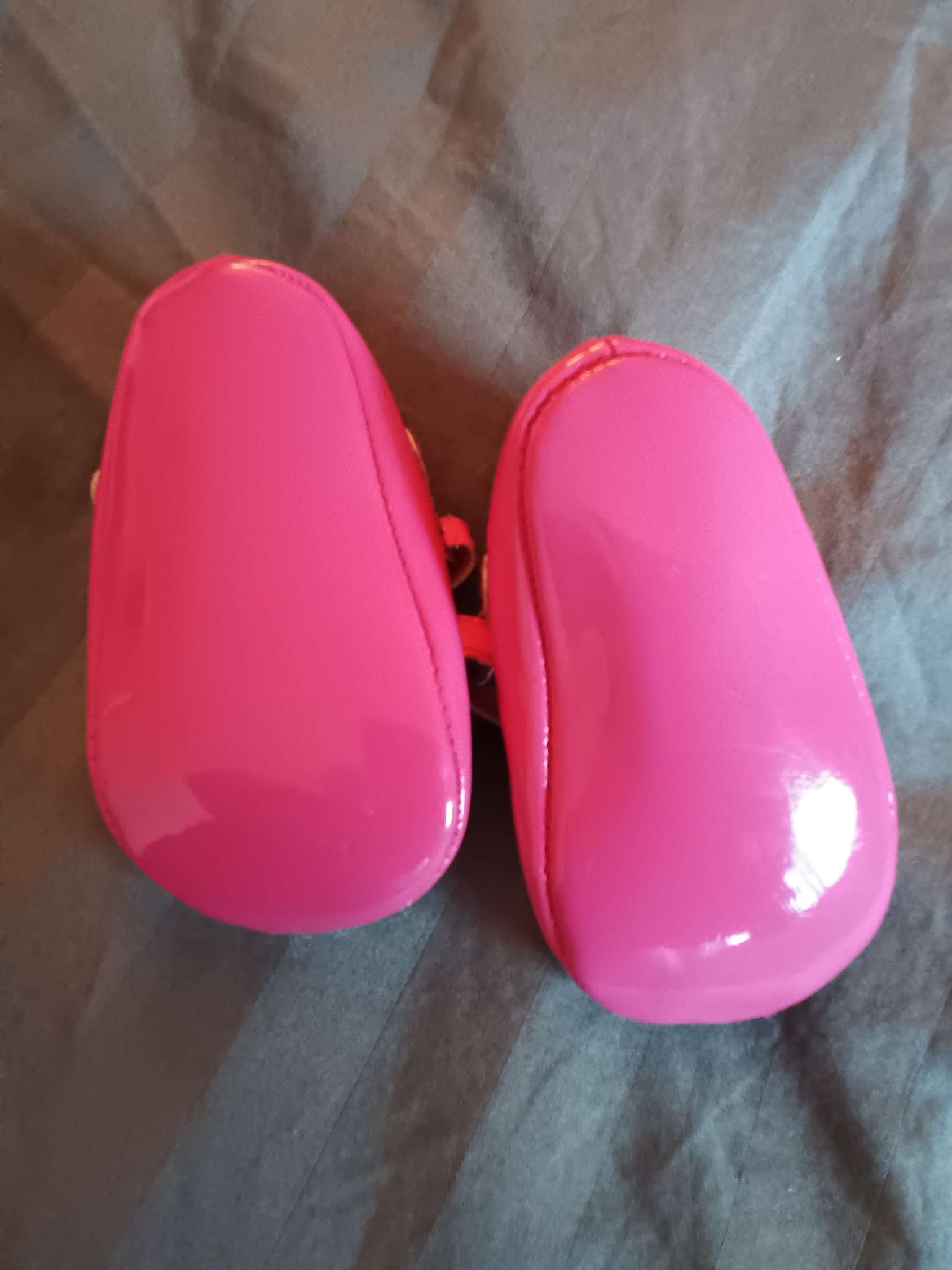 Description : Pink Patent Newborn Shoes with Daisy, Velcro strap, never worn