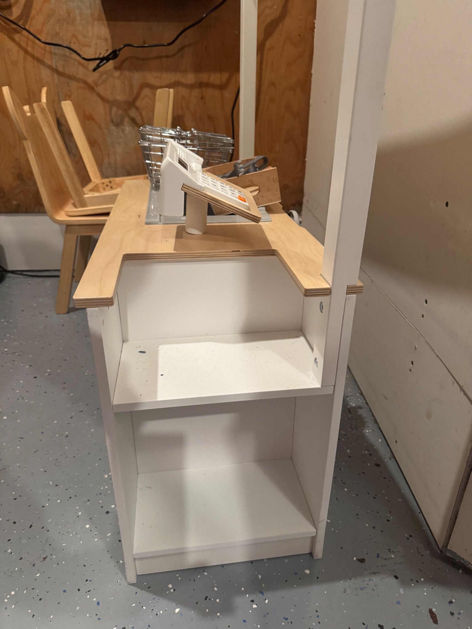 Description : Pottery Barn Kids Market play stand. Missing the plastic scanner, remaining parts in excellent condition. Includes baskets