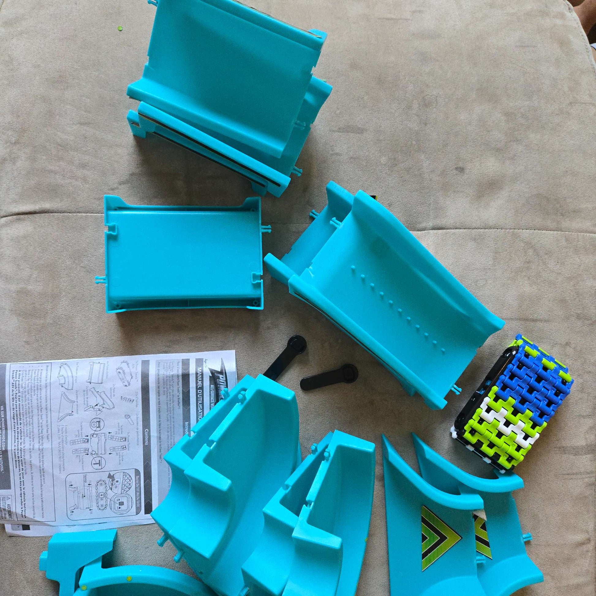 Description : Car is battery operated, includes car, track and instructions. My kids really liked this, it's a really different toy. Some stickers are peeling, some are probably missing, doesn't affect use