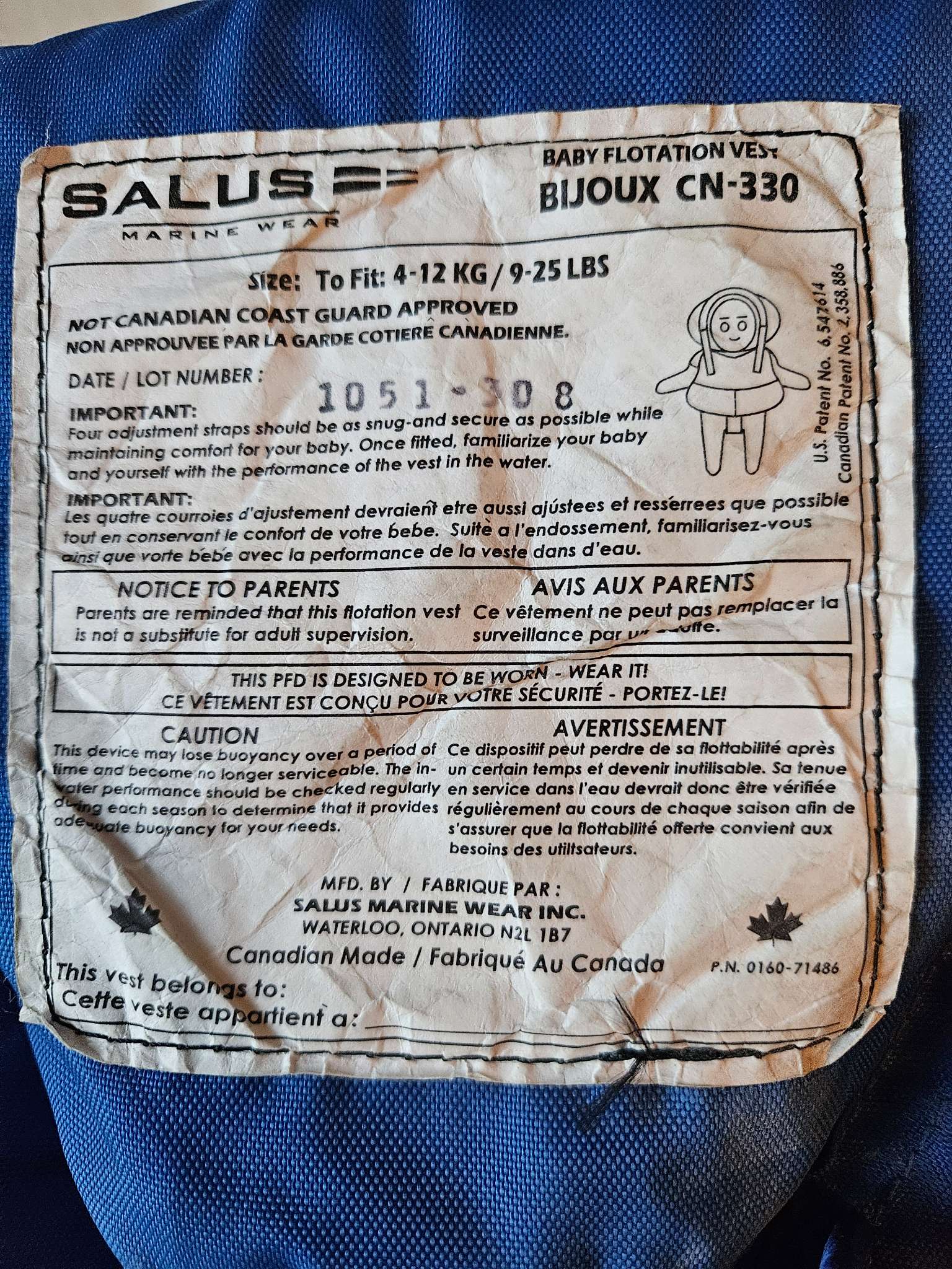 Description : Good condition. It is NOT Canadian coast guard approved. See pictures for full label