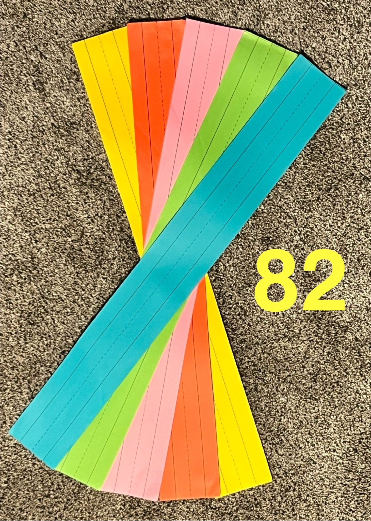 Description : For your classroom or homeschool needs - 4 packages of sentence strips. Includes: •3”x24” five colour paper strips with 95/100 left •3”x24” five colour paper strips with 82/100 left •2.5”x11” three colour cardboard strips with 30/30 and an extra 9 •3”x8” five colour paper strips with 55/75 left Smoke & pet free home
