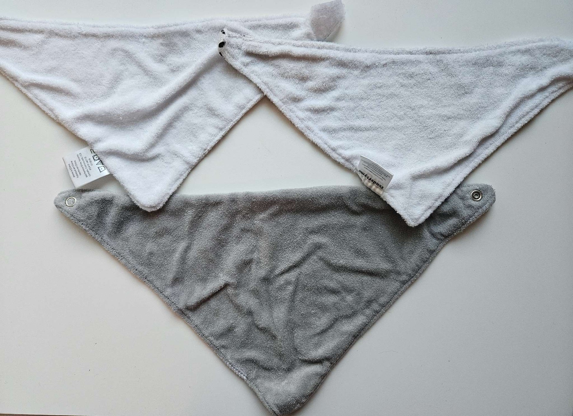 Description : All in good condition, the grey bib does have the tag cut off as seen in photos. No visible sign of wear. Top 2 are velcro close, bottom is button