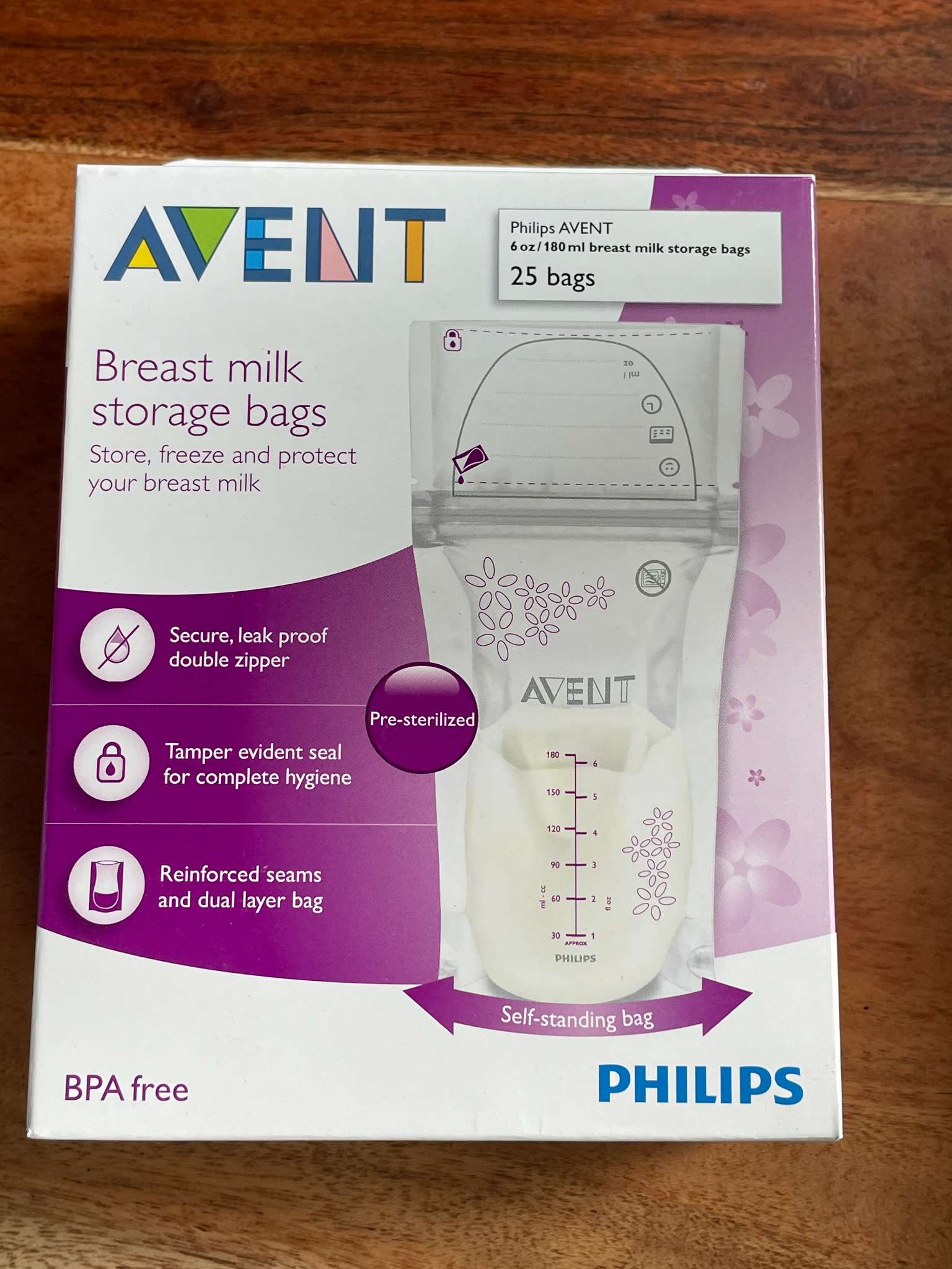 Description : 2 x 9 oz Avent Bottles 4 x 4oz Avent Bottles 1 box of 25 breast milk storage bags