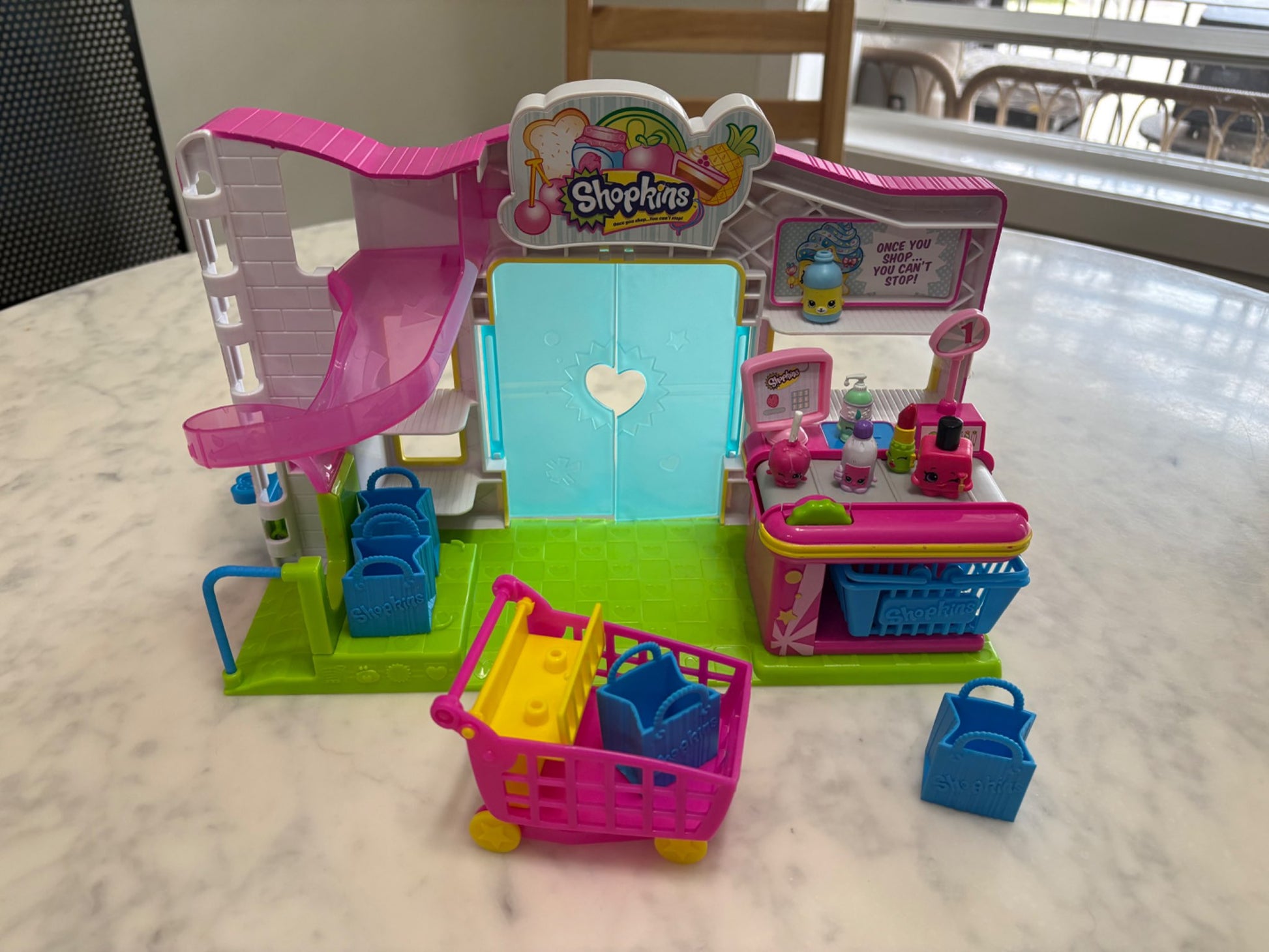 Description : Sooo many Shopkins Perfect for kiddos 4+ Includes •Happy Places Shopkins Happy Home •Shopkins Happy Places Happy Homes Games Room and Laundry Room •Shopkins Happy Places Home Pool & Sun Deck Play Set •Shopkins Supermarket Playset • Belle Shopkins Set •Shopkins bag (there is a small hole at the top of the bag (as pictured) but it doesn’t effect the use of the bag) And much more!