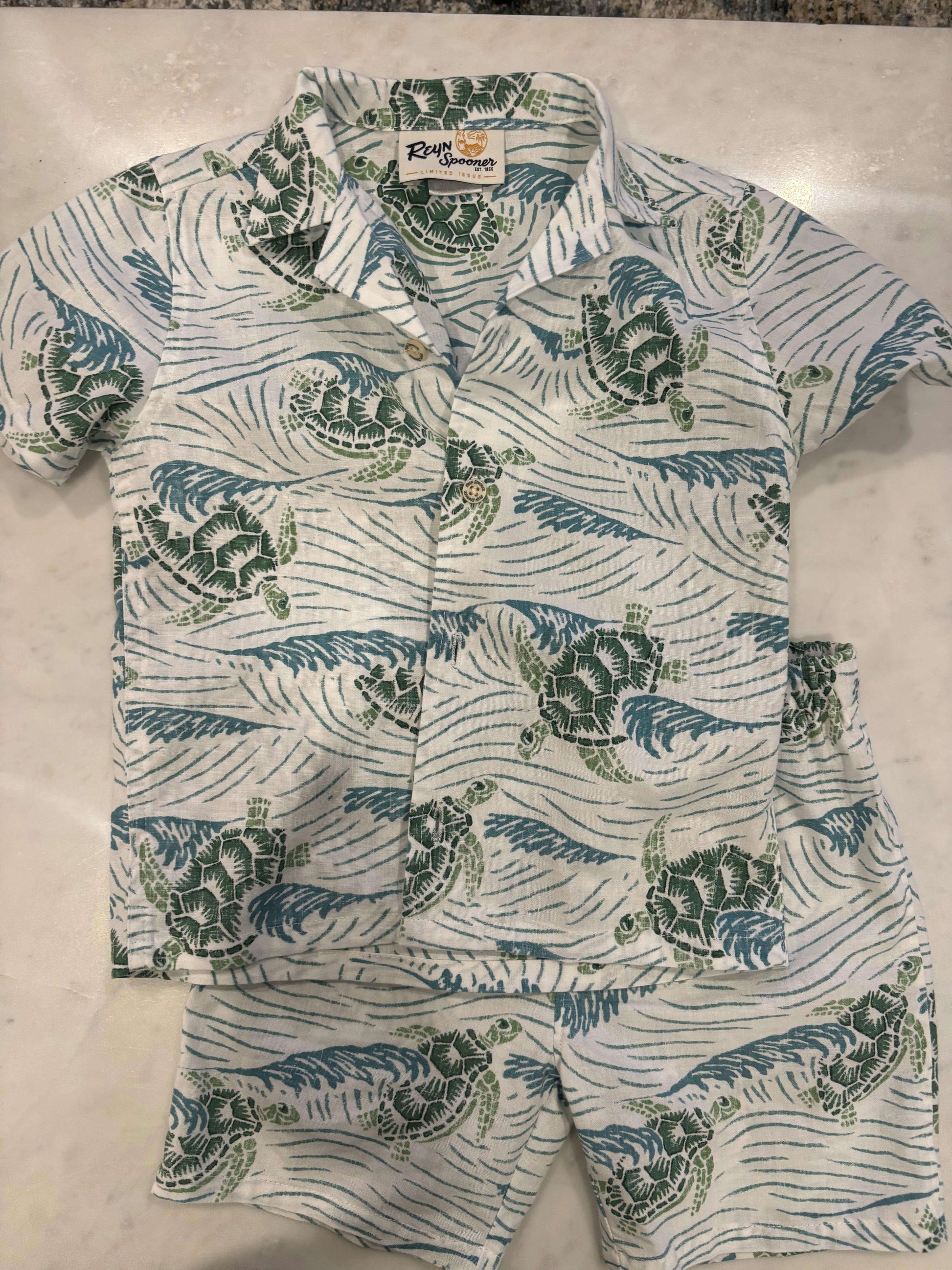 Description : Adorable Hawaiian turtle short set. Worn once. Purchased in Hawaii for $45USD. 4T