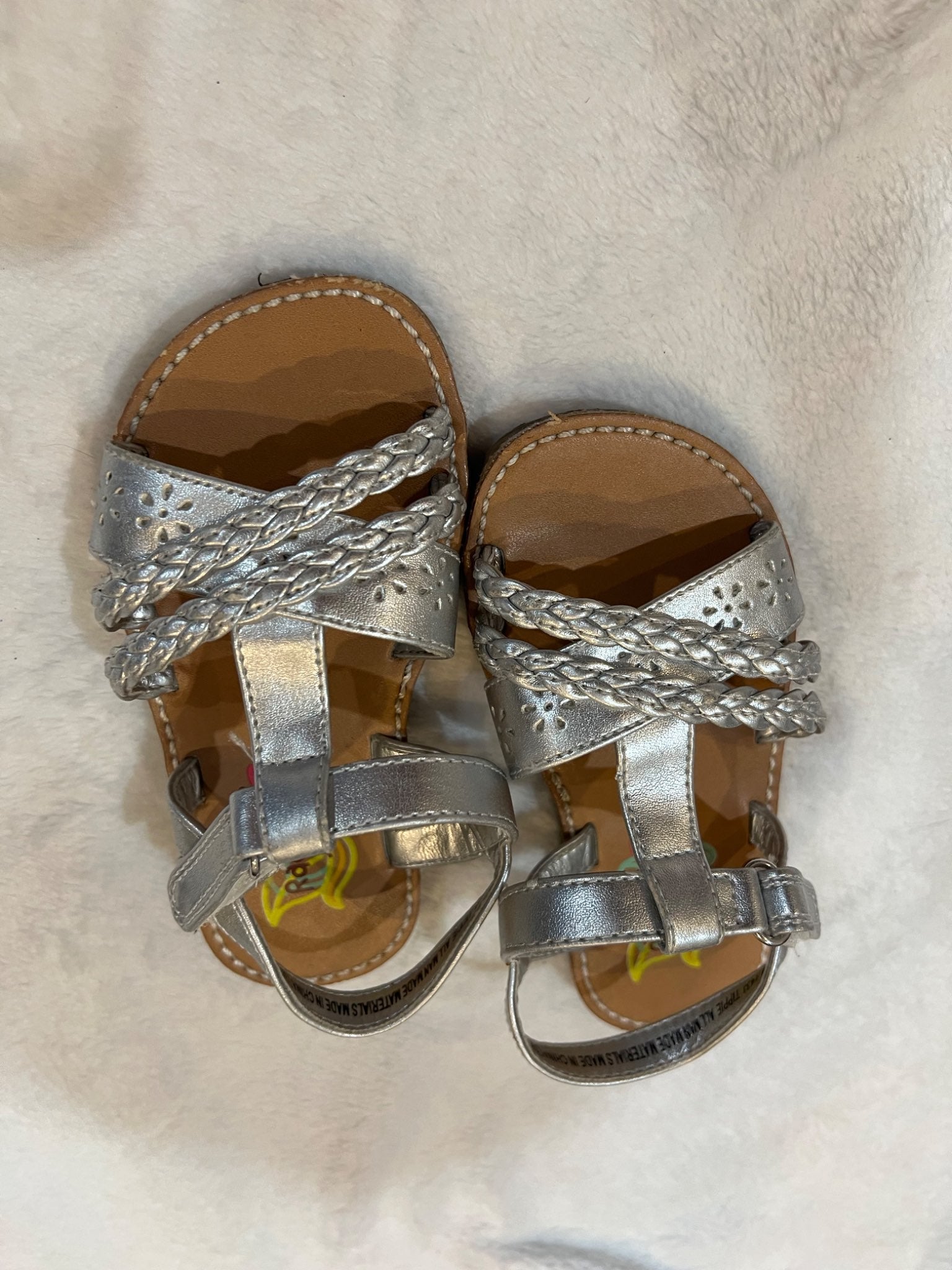Size 7T- silver sandals , Shoes 7 (Walkers:12-24 mth)