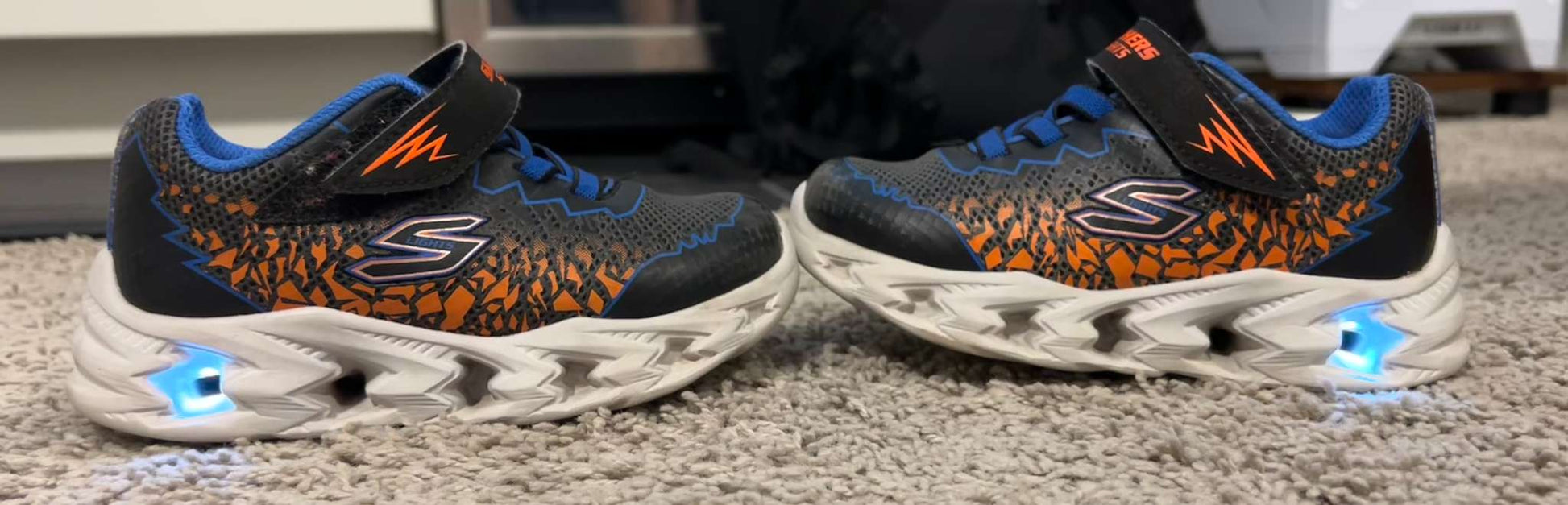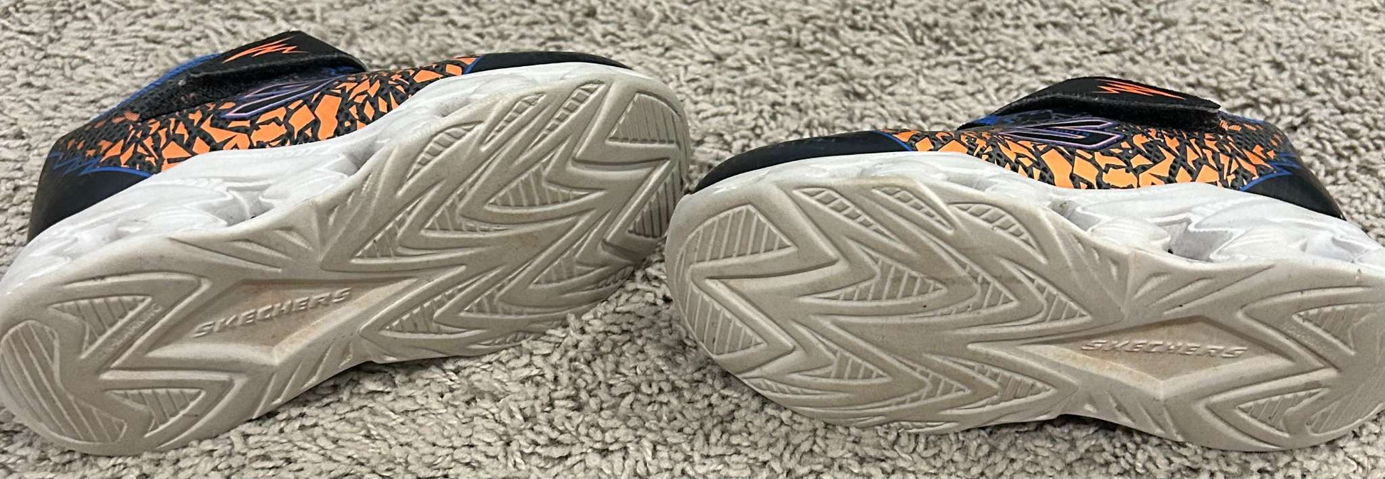 Description : Sketchers S-Lights Sneakers - BLACK/ORANGE (Size: 9) White/Light blue lights still work.