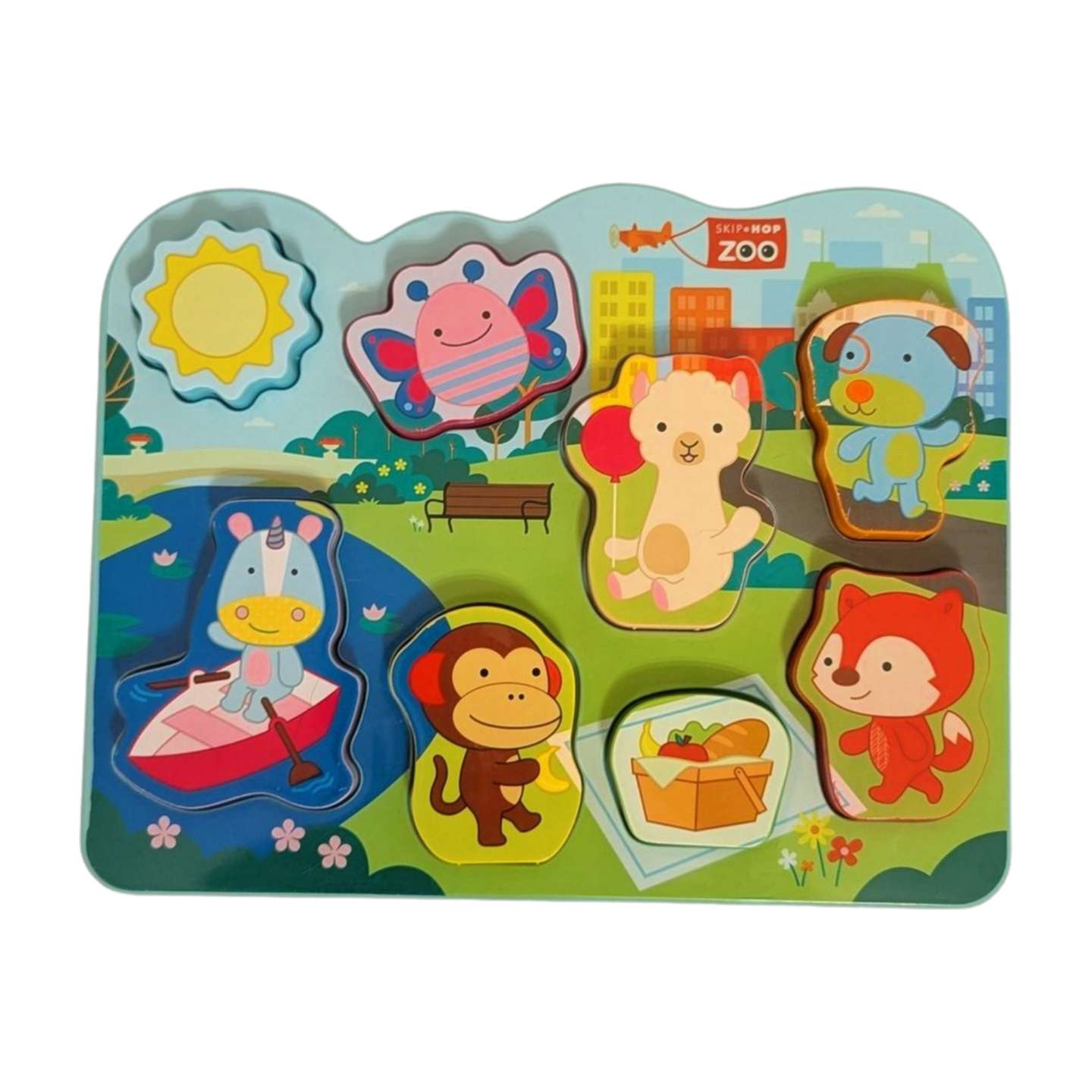 Description : Picnics, boating, running! Little ones will love to piece together a fun-filled outdoor adventure with cute and colorful ZOO friends. Eight chunky pieces are easy for little hands to grab—plus they stand on their own for pretend play. Zoo clues etched into puzzle board.