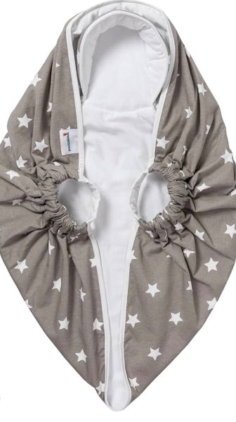 Unique blanket with padded head support and handles. Can be used for easy transfer from stroller to crib or can offer an easier way of holding baby, great for rocking a baby. Organic cotton