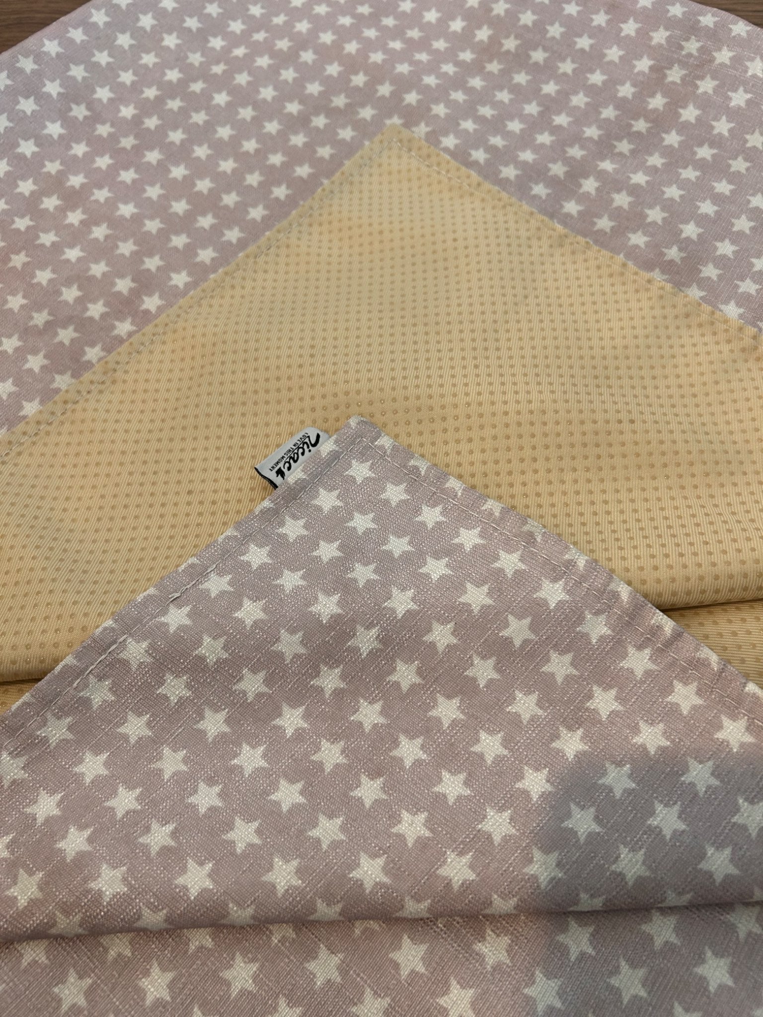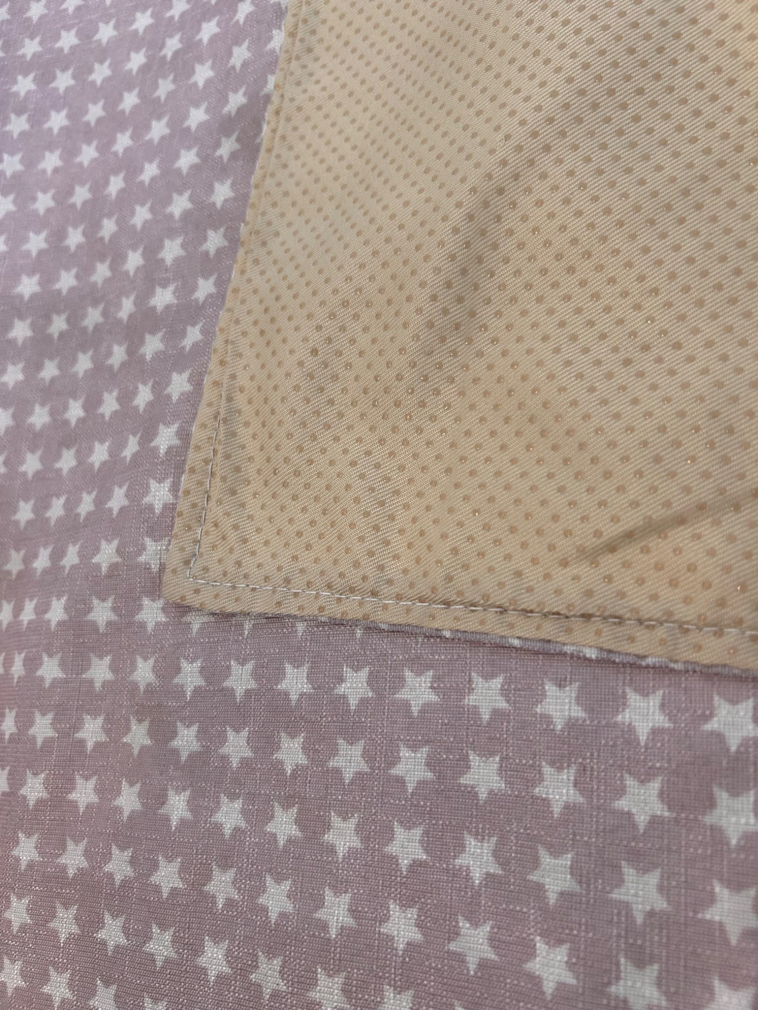Description : 42" x42" Grey with Stars Machine Washable Grippy bottom Some light spotting on top from use. Washed and clean!
