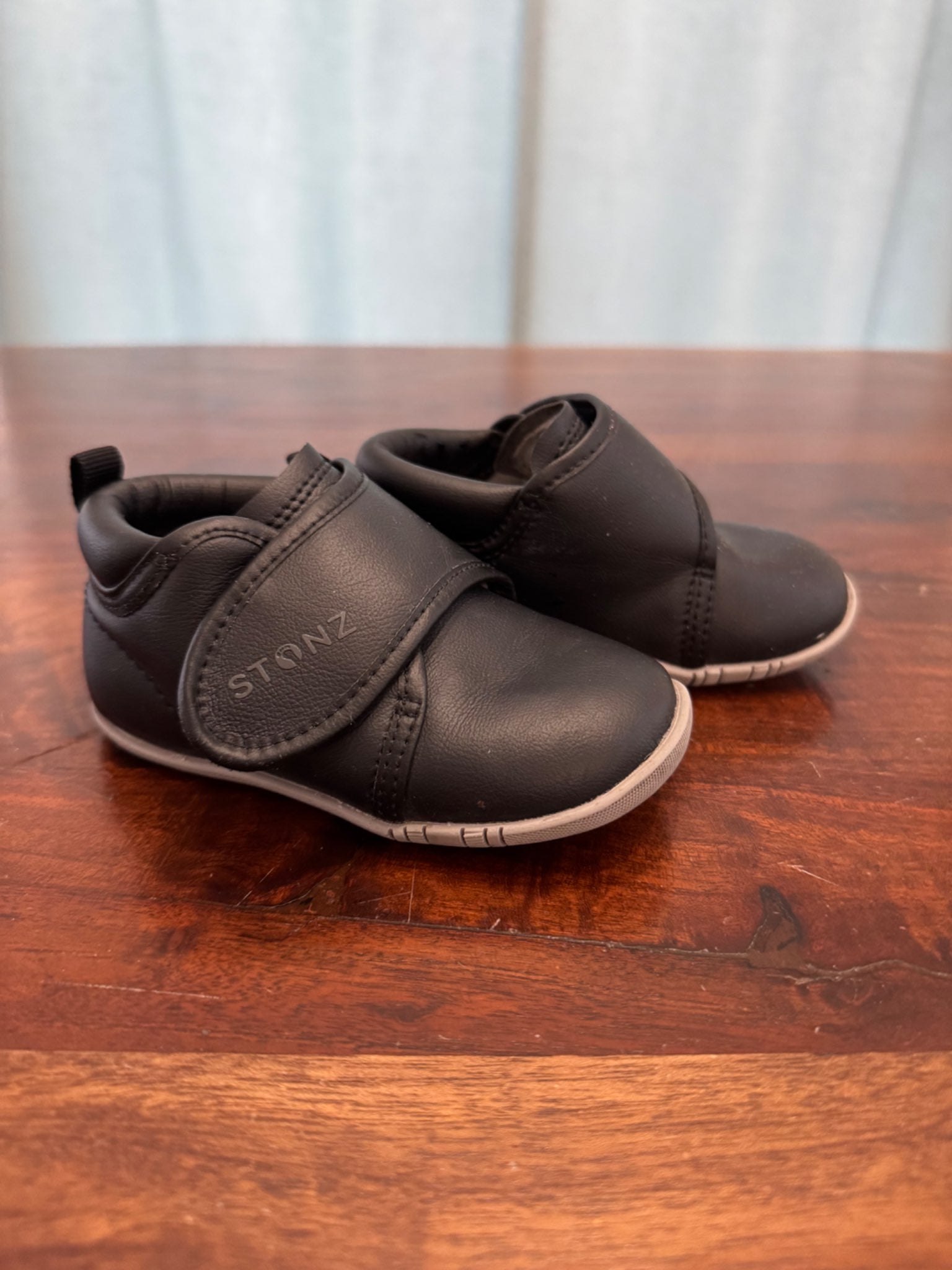 Description : Worn only a handful of times. Step into comfort and style with the Cruiser™ Dressy, the elevated version of our award-winning, APMA-recognized first walker shoes. Perfect for little feet taking their first steps, these shoes feature a weather-ready upper to keep tiny toes dry and comfy, no matter what the weather has in store. Vegan Microfiber Leather Alternative: PU microfiber is a vegan, breathable material offering excellent water repellent and abrasion-resistance properties, ensuring long-lasting wear. It’s soft, flexible, and easy to clean, making it a safe, non-toxic, and eco-friendly choice for our kids. Wide Toe-Box: Allows the toes to spread naturally and move freely, promoting proper alignment and foot health Flexible Soles: Allow for natural foot movement, crucial for developing strong foot muscles and proper alignment. Flexible soles help kids' feet grip and push off the ground, supporting their balance and coordination. Easy-On, Stay-On Design: The convenient hook and loop wide single strap closure saves both parents and little ones time and effort. Lightweight Construction: Enhances comfort and mobility while reducing fatigue, making it easier for babies to maintain their balance and coordination. Zero Drop: Allows children's feet to move naturally, promoting better posture and balance as they grow. This design supports a more natural gait, encouraging proper alignment. Sustainability: Designed with eco-friendly materials like recycled PET, cotton, and linen insole liners, 73% recycled foam insoles, a vegan PU upper, and a natural rubber blend outsole with reclaimed rubber. These materials reduce waste and environmental impact while ensuring durability and comfort.