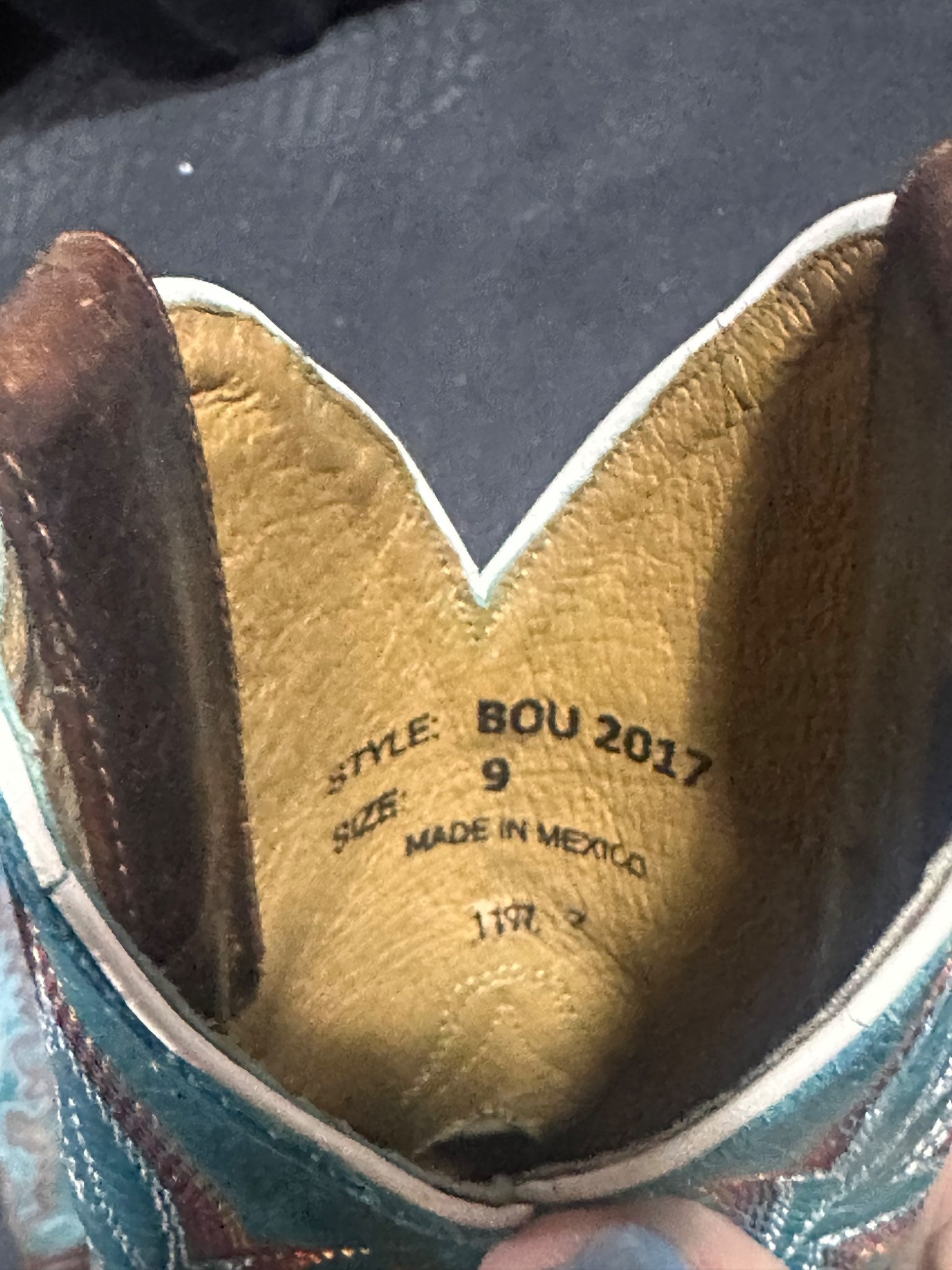 Teal and brown cowboy boots 9, Shoes 9 (Toddler:2-4yr)