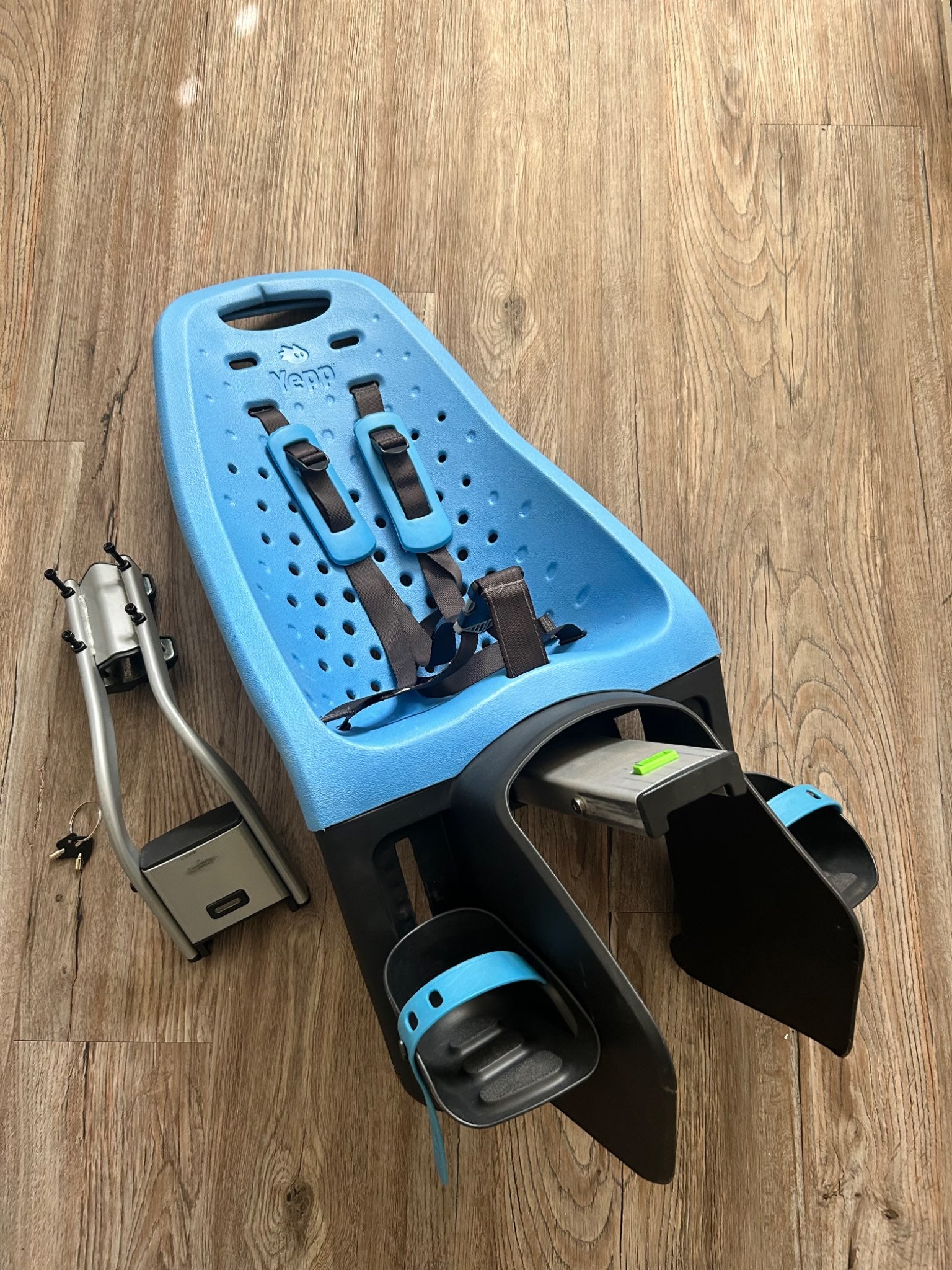 Description : Post included! Everything you need to install! Used this season. Manufactured 2017 Manual easily found online. All hardware and parts included. Locking keys included. New model retails for $320 at MEC and West Coast Kids. Details Smart and functional child bike seat designed for everyday rides. Features - Easy mounting of the child bike seat on the frame of your bike - Your child sits comfortably in the soft and shock-absorbing seat - Maximum child comfort and a safe, custom fit thanks to the adjustable padded 5-point harness - Your child is quickly and easily secured with the childproof safety buckle - Added visibility thanks to built-in reflector and safety light attachment point - Ensures a perfect fit as your child grows thanks to adjustable foot rests and foot strap - Easy to clean and to keep dry due to the seat's water-repellent materials - Designed and tested for children from 9 months* to 6 years old, up to 48.5 lbs/22 kg Technical specifications - Weight capacity: 48.5 lb - Weight: 10 lb - Safety harness: 5-point