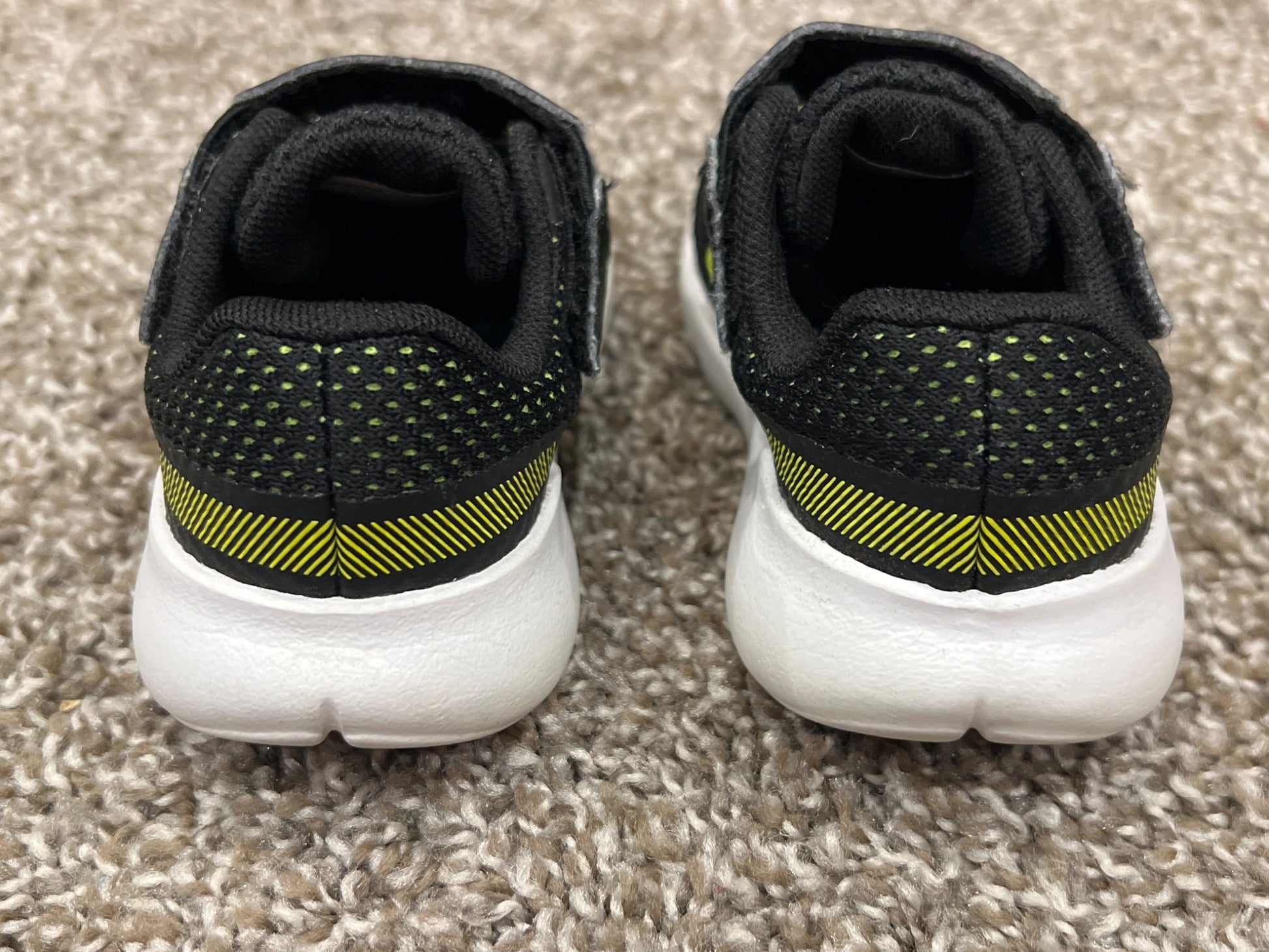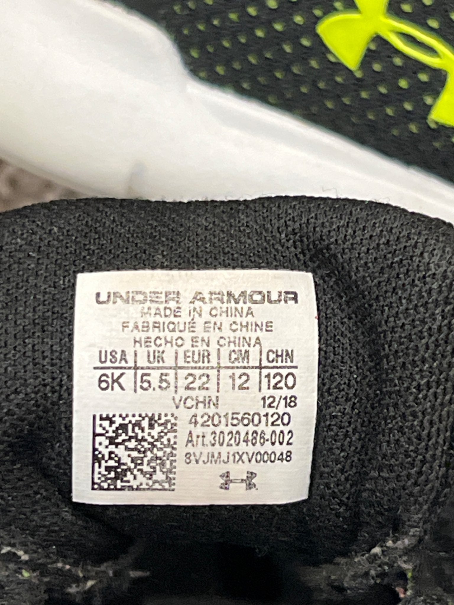 Description : Toddler Boys, Under Armour Running Shoes, Black with fluorescent yellow accents, size 6, VGUC