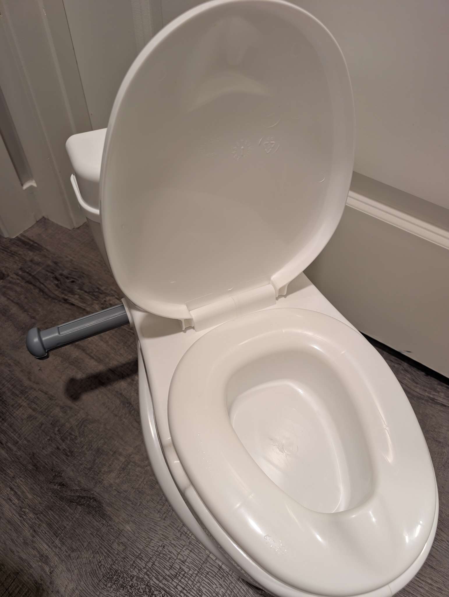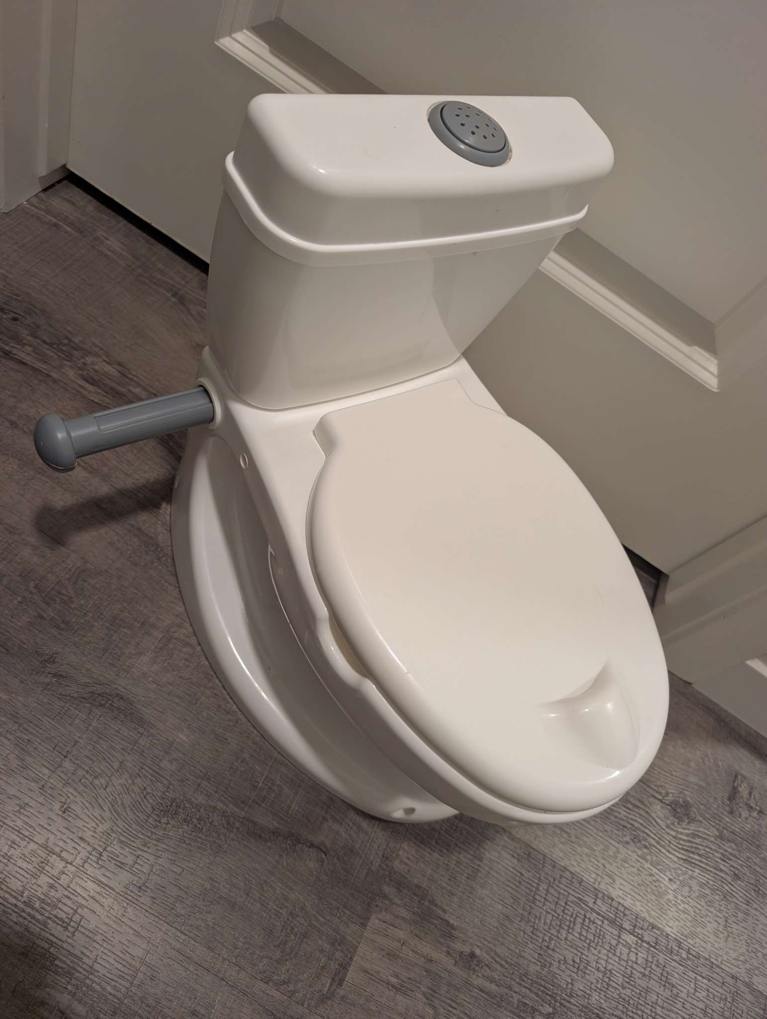 Description : Potty toilet miniature. Toilet paper holder and flush sound.
