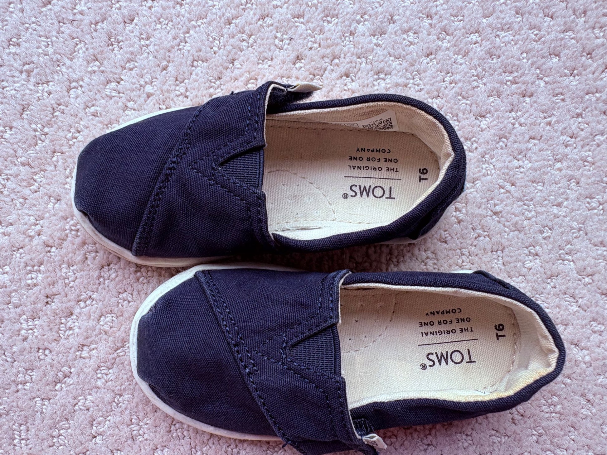 Toms- navy blue Velcro loafers, size 6, Shoes 6 (Walkers:12-24 mth)