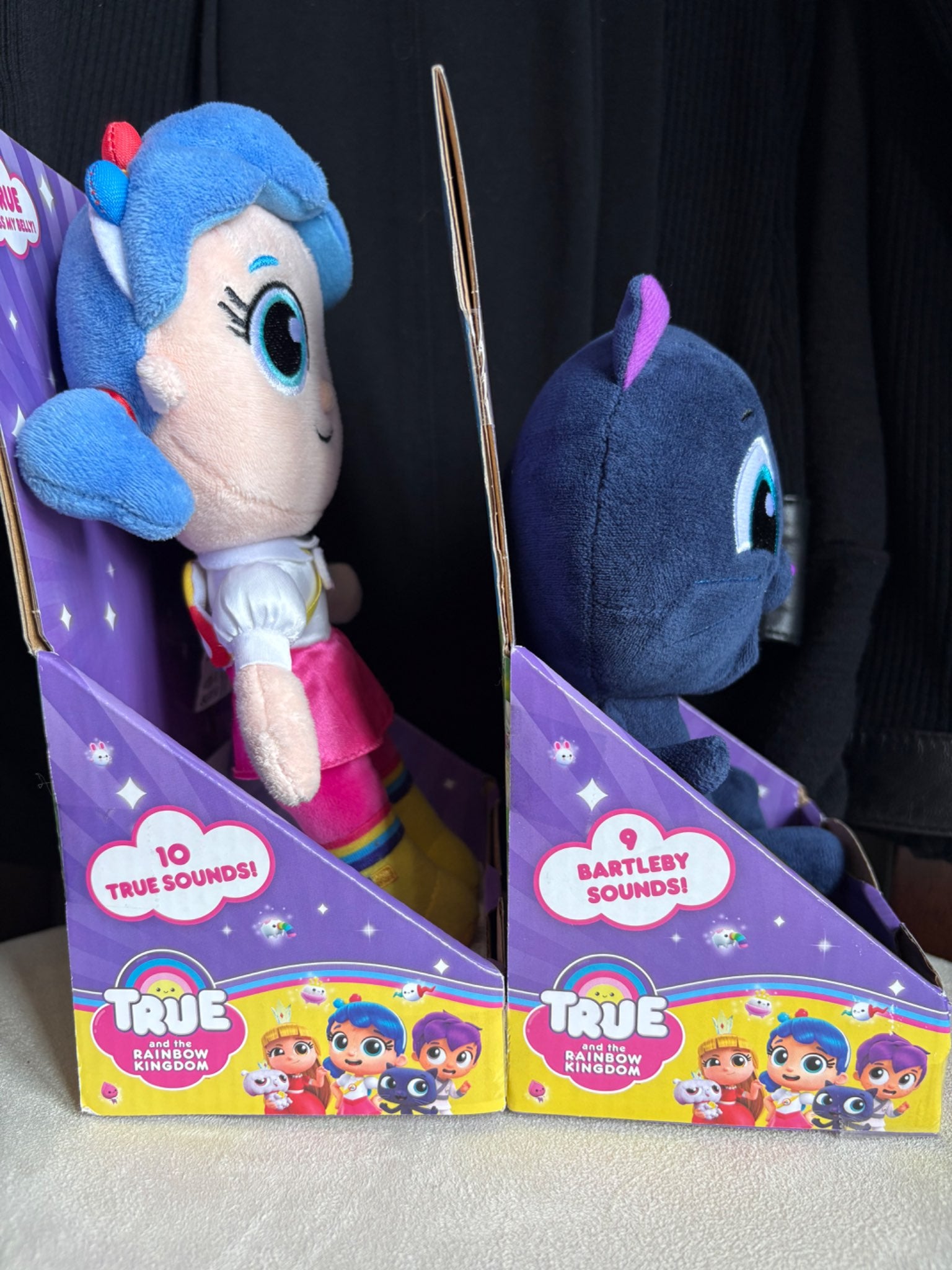 Description : From True and the Rainbow Kingdom on Netflix. True makes 10 sounds/sayings (needs new battery). Bartleby makes 9 sounds/sayings. Super cute plush toys!