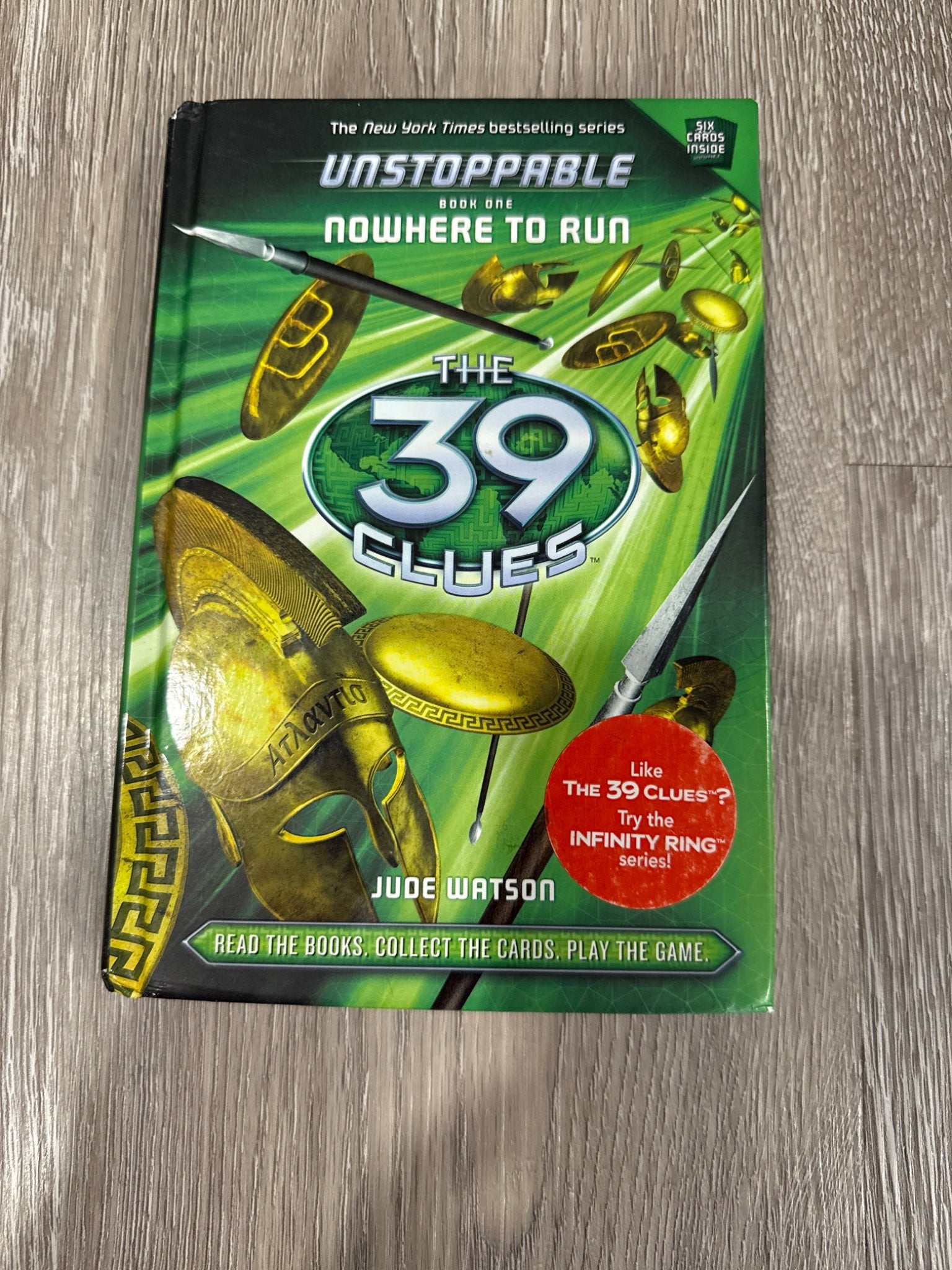 Two of the famous 39 Clues books The Maze of Bones and Nowhere to Run