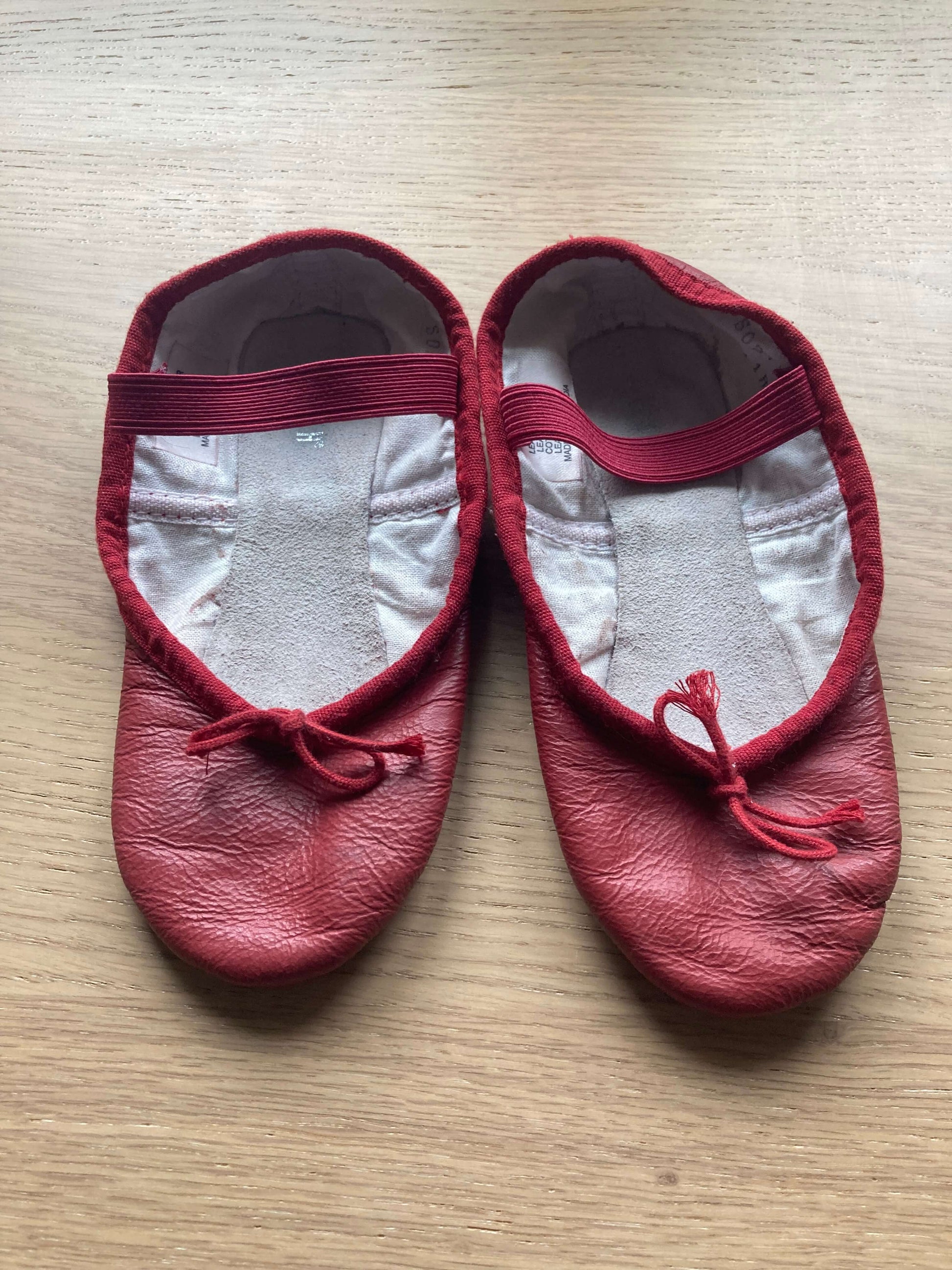 Description : An ideal student ballet shoe with a full sole and elastic already attached over the instep. Has a strong yet flexible leather upper and a cotton lining. Elastic drawstrings allow to adjust the shoes to snugly hug the feet Suitable for Folk or Ukranian dancing. Worn once and in excellent condition.