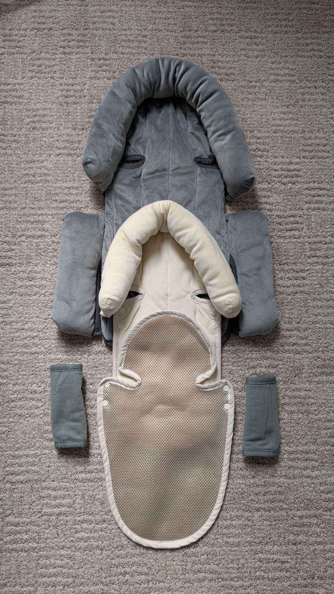 Description : 3-in-1 Car Seat Insert Cushion Pad & Strap Cover for Newborn Infant - Extra Soft Body Seat Insert Cushion Pad, Perfect for Carseats, Strollers, Swings (Grey)