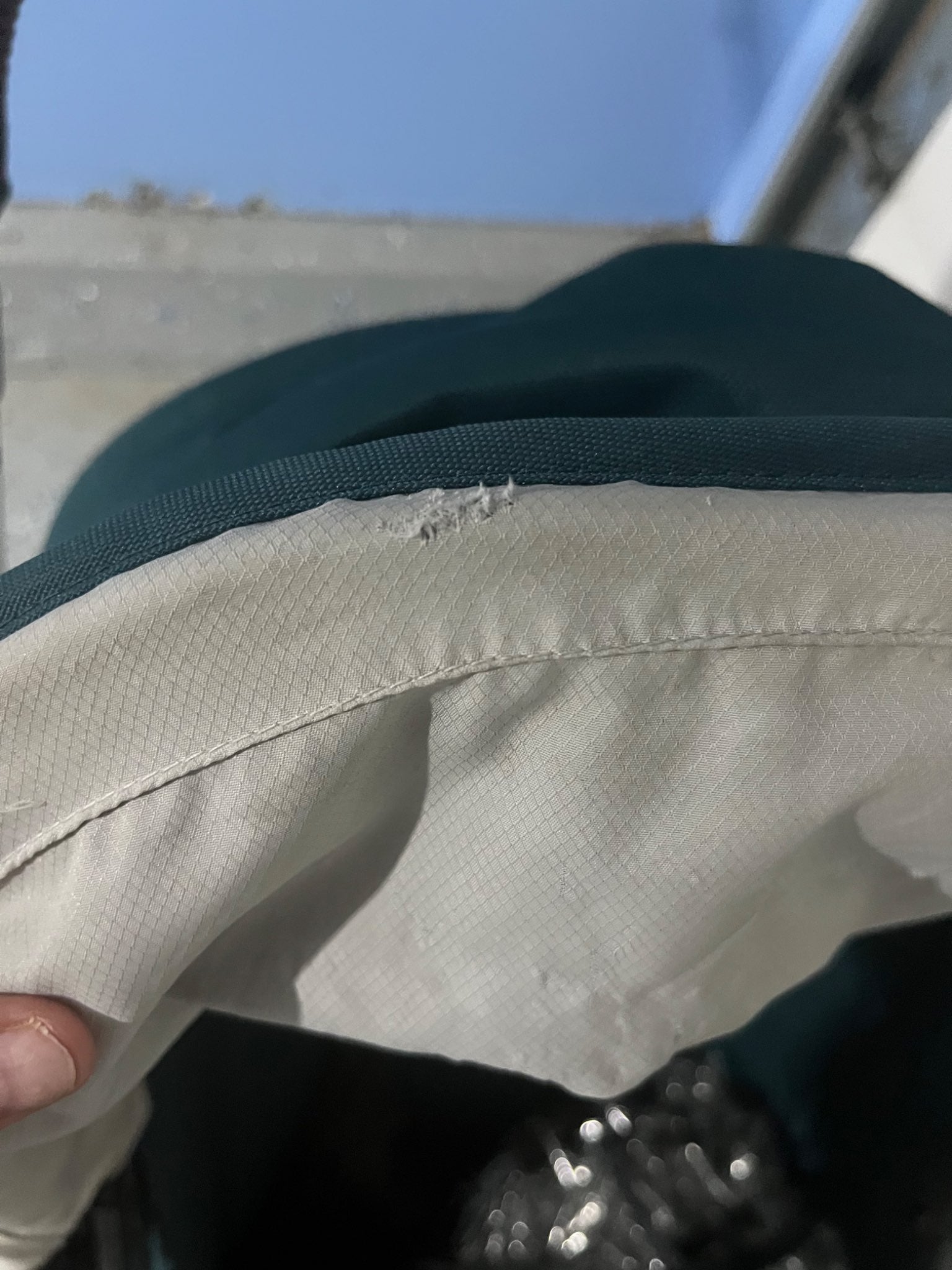 Description : Uppababy Cruz V2 stroller with rumble seat. Comes with rain cover. Teal colour. In very good condition. All parts work well. Some discolouration on handles and small tear underneath seat canopy (both pictured). Easily folds to put in car or bring into house.